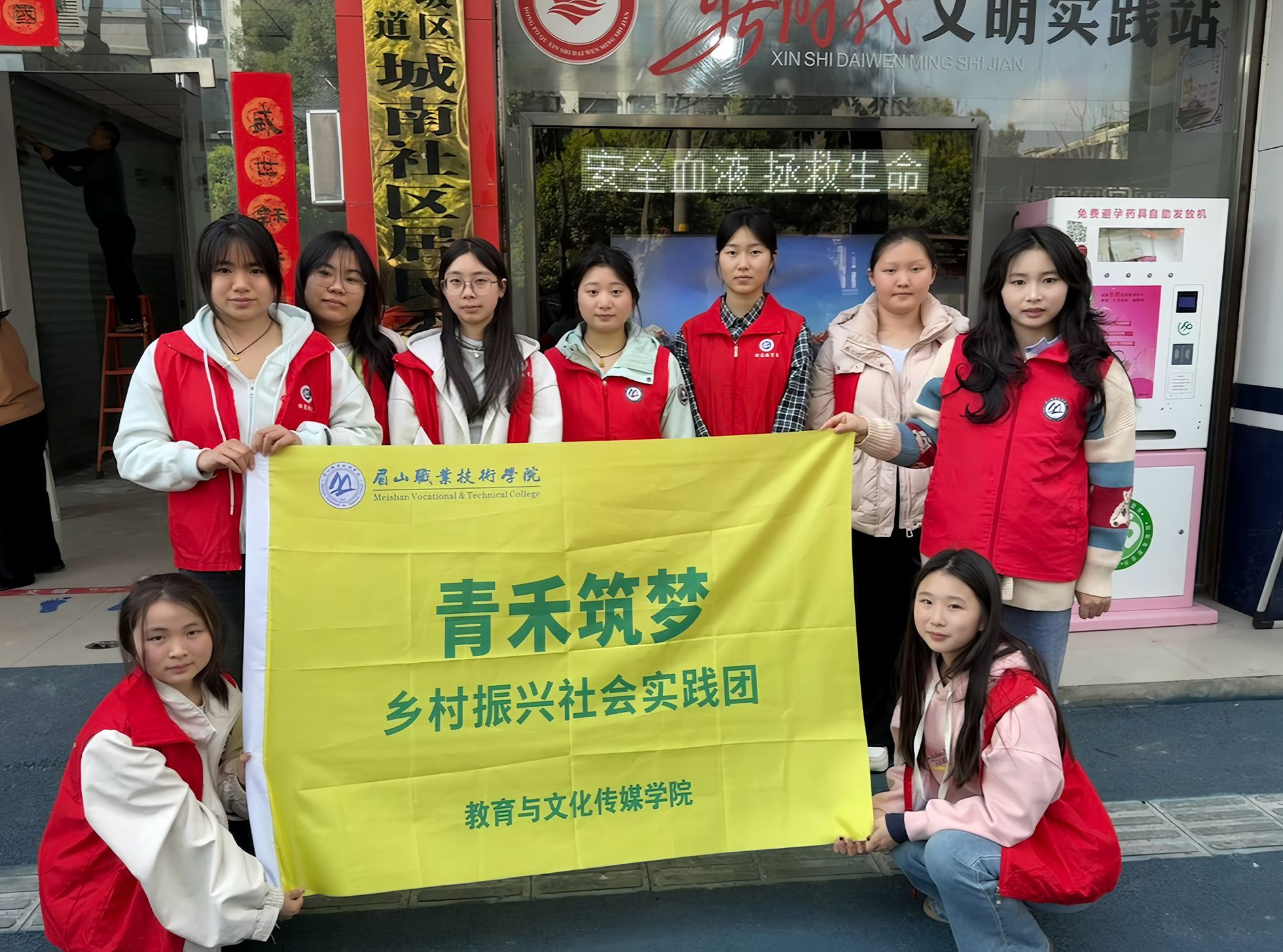 为引导青年学子在服务基层中增长才干、助力社区治理与民生改善,2026年寒假,眉山职业技术学院教育与文化传媒学院“青禾筑梦”实践团深入眉山市东坡区蓬莱、城南、高灯三个社区,开展为期近两个月的“返家乡”社会实践活动。团队由学院学工秘书陈思雨,辅导员徐佳忆、陈星旭带队,来自学前教育、数字媒体与设计等专业的10名学生共同参与。