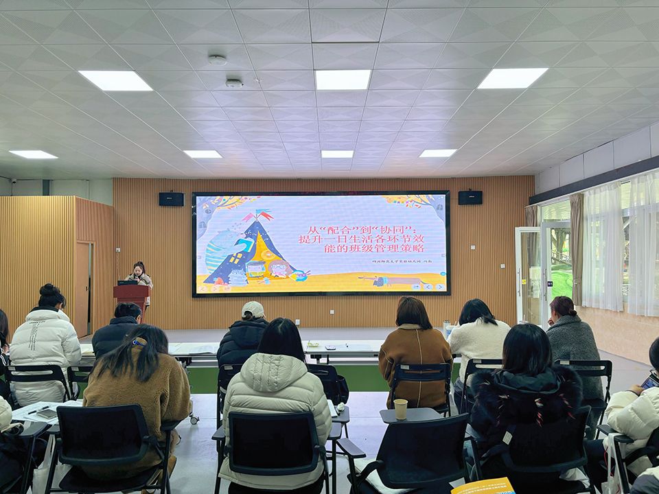 接着,冯琴老师作了题为《从“配合”到“协同”:提升一日生活各环节效能的班级管理策略》的案例分享,系统阐述了幼儿园一日生活中提升班级效能的创新策略。她以自身十年岗位经验为基础,构建了“保教协同、幼儿培养、环境辅助”三维实践框架。