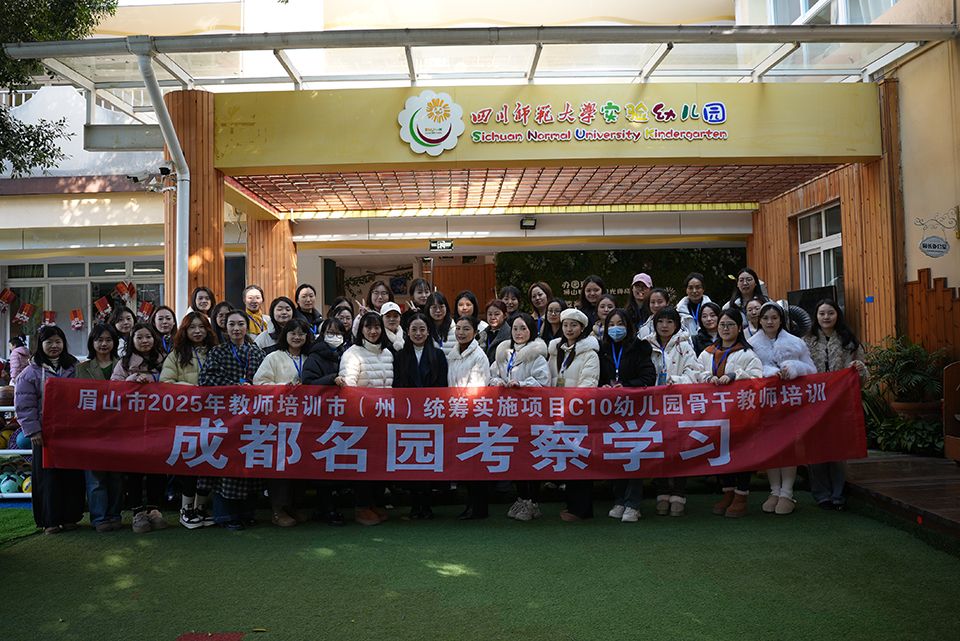 2025 年教师培训市(州)统筹实施项目-C10 幼儿园骨干教师培训项目由眉山市教育和体育局主办,眉山职业技术学院承办。本项目以习近平新时代中国特色社会主义思想为引领,围绕弘扬教育家精神,提升幼儿园教师保教能力为目标,按照“专题拓知→ 跟岗促思→导师带教→返岗践行 ”的培训思路,采用“集中研修+跟岗实践+名园考察+学员论坛+汇报展示+总结提升+返岗实践 ”等混合式培训模式,实施为期 10 天的“ 幼儿园骨干教师保教能力提升 ”培训, 旨在帮助参训学员筑牢精神根基,坚定教育理想信念,赋能技能淬炼,提升保教能力,促进专业发展,提升综合素养。