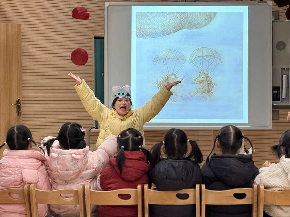 活动以教师扮演小老鼠讲述探险故事导入,通过PPT展示探险场景,迅速激发幼儿兴趣。在基本环节中,幼儿先完整感知音乐并观察教师示范的登山、望远、滑伞、吃食物等模仿动作,再通过分段练习熟悉音乐结构与动作顺序,随后化身小老鼠完成完整的探险动作体验。活动的难点突破环节,教师引导幼儿结合“美食时间”主题自由创编吃食物的动作,并将创编动作融入整体探险情境中进行完整演绎,教师还对幼儿的创编与表现给予及时鼓励。最后,教师跟随音乐呈现探险路线图,揭晓探险秘密,为活动画上句号。