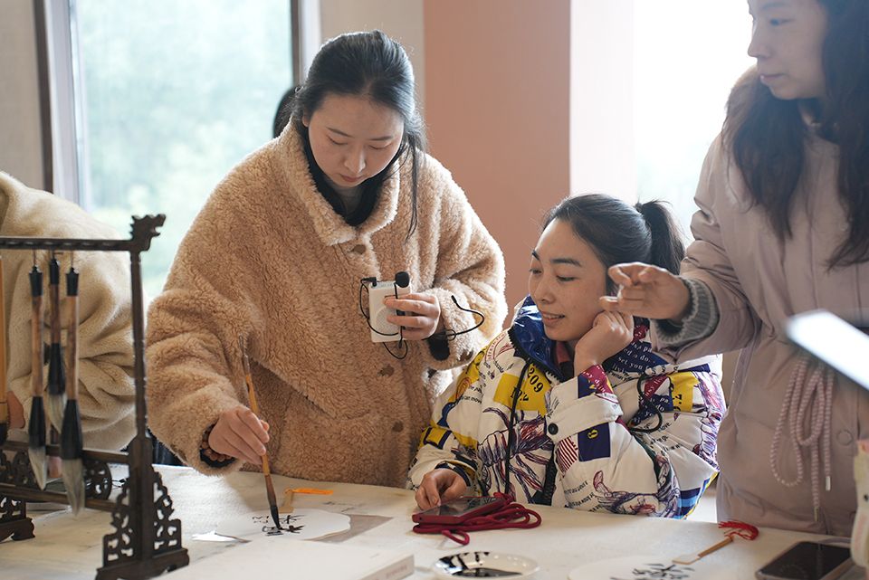 最后,在工作人员的带领下,老师们参观了眉山职业技术学院非遗传承发展中心,这是一个集工艺美术精品和非物质文化遗产展示、保护、研究于一体的文化殿堂。首先是“青神竹编”,青神被誉为“中国竹编艺术之乡”,老师们在这里看到了青神竹编艺术的传奇,也看到了青神竹编手艺人传承的历史和他们精湛的工艺,老师们对青神竹编叹为观止。接着,老师们参观了剪纸艺术区,剪纸作为我国非物质文化遗产的一部分,它不仅仅是一门手艺,更是承载了中国千年文化的活化石,这里的剪纸主题包括:吉祥图案、人物故事、民俗生活、花鸟鱼虫、宗教与祭祀。在欣赏的过程中,老师们忍不住发出了一声声惊叹,中国的剪纸艺术用最普通的材料和工具,创造出了一个丰富多彩的世界,是链接过去与现在、物质与精神的重要文化纽带。