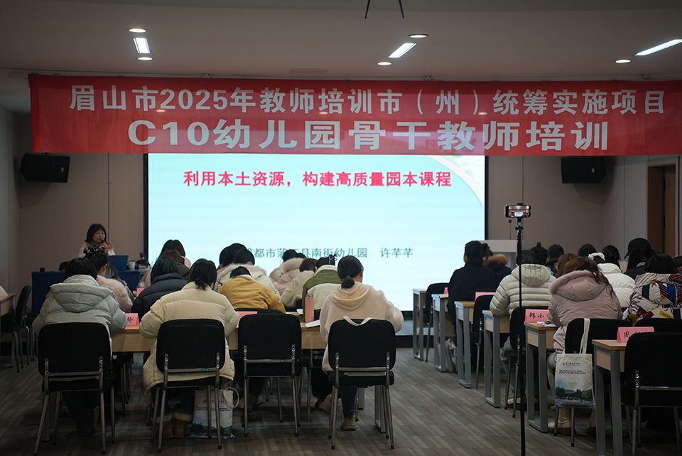 上午,蒲江县南街幼儿园园长许芊芊以《利用本土资源,构建高质量园本课程》为题作专题讲座,许园长提出幼儿园正从“普及普惠”迈向“高质量发展”新阶段,围绕高质量课程落地形态、如何跳出“盲目追风”怪圈、锚地科学发展方向,她进行了深度解析。许园长提出:要保证每一个“生活在当下”的儿童过“有意义”的生活;在有准备的环境中,让教育自然发生,幼儿实现自然生长。随后,许园长详细介绍了该如何立足本土资源构建课程,又该如何锚定这一关键方向,总的来讲要贯彻落实国家各级教育文件精神,构建“家-园-社”协同育人教育生态,依托真实丰富生活场景作为实践载体,助力幼儿自由探索与自然生长。