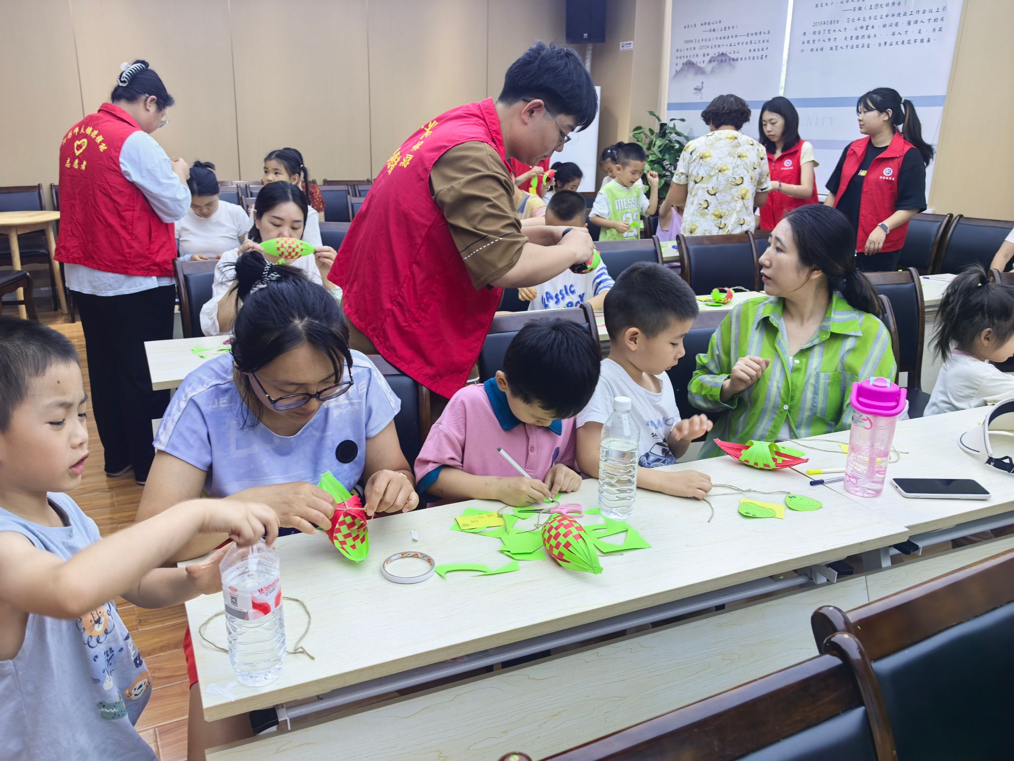 最受孩子们喜爱的当属粽子吊饰手工制作环节。在志愿者的悉心指导下,孩子们运用卡纸、彩笔、剪刀等工具,亲手折制出五彩斑斓的“小粽子”。他们充分发挥创意,为作品画上俏皮表情、书写节日祝福,现场洋溢着欢乐的节日气息。