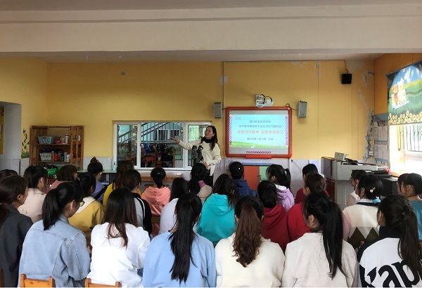 2021年4月20日,眉山市第一幼儿园对眉山职业技术学院2019级学前教育专业实习生开展了专题培训,园长兰志英、副园长朱艳丽、刘瑶及全体实习生参会。会议由刘瑶主持。