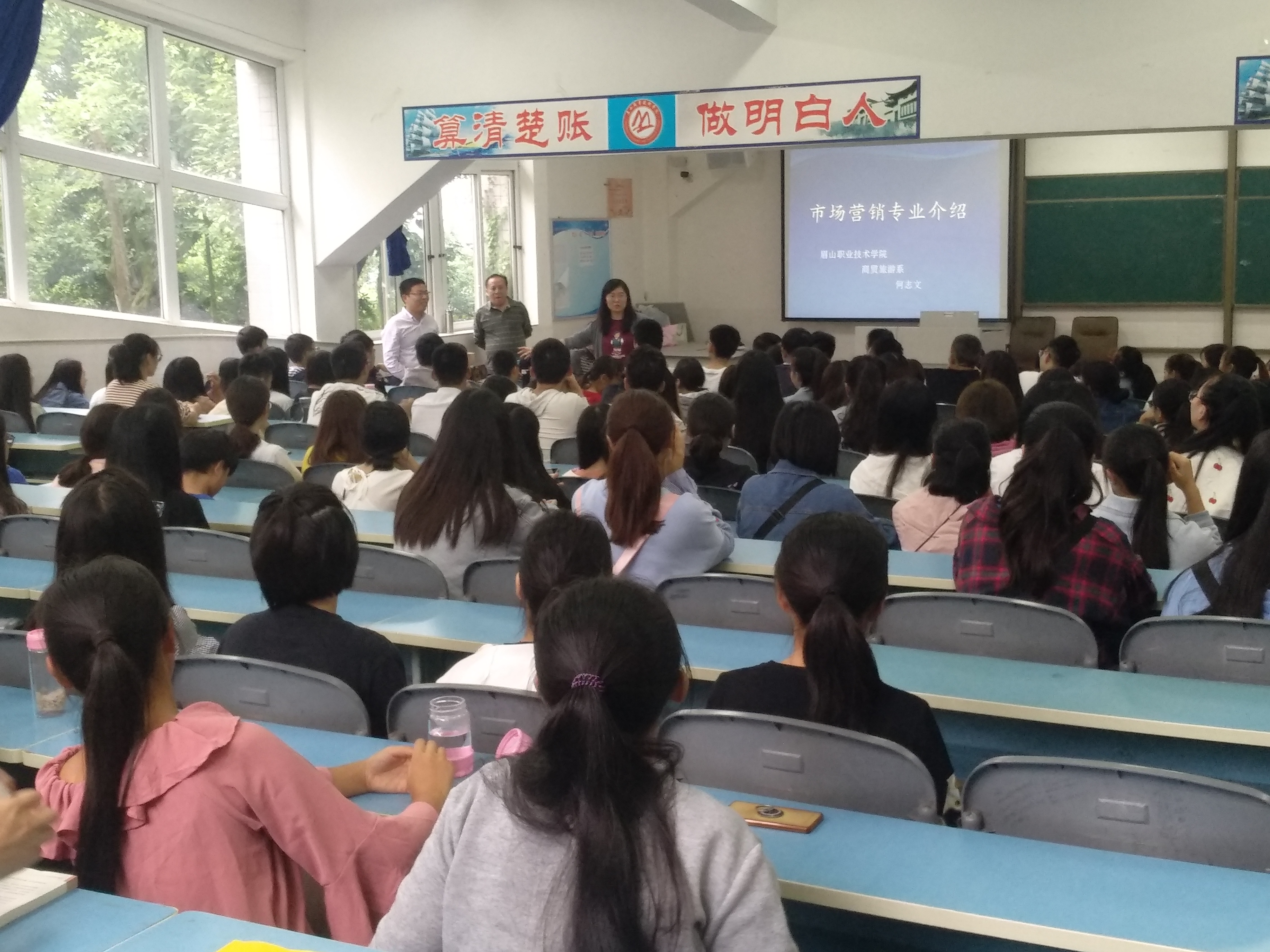 首先,教研室主任熊艳向学生们介绍了参会的每位专任教师和电子商务与市场营销专业的基本情况,表达了对在座每位同学的热烈欢迎。接着,由何志文和杨家蓉两位教师分别对市场营销和电子商务两个专业做详细介绍。何志文介绍了市场营销专业的基本情况,通过“学什么”,“为什么”,“怎么做”等几个问题回答了学生们最想知道的一些情况。杨家蓉通过一些生活案例告诉大家我们来学校不光是学知识,更要学会基本的道德素质和职业素质。