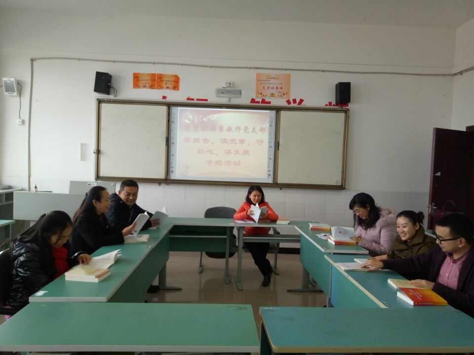 结合“两学一做”学习教育计划,任弘组织党员教师逐字逐句通读学习了第一章《党员》,第七章《党的纪律》。学习后,大家就学习内容进行了热烈讨论,支部成员纷纷表示,严格遵守《党章》,领会其精神实质,是每一个党员应尽的职责与义务;党员教师要在实际行动中自觉践行党章,立足岗位作表率,牢记宗旨树先锋,积极为党和国家的教育事业作贡献。
