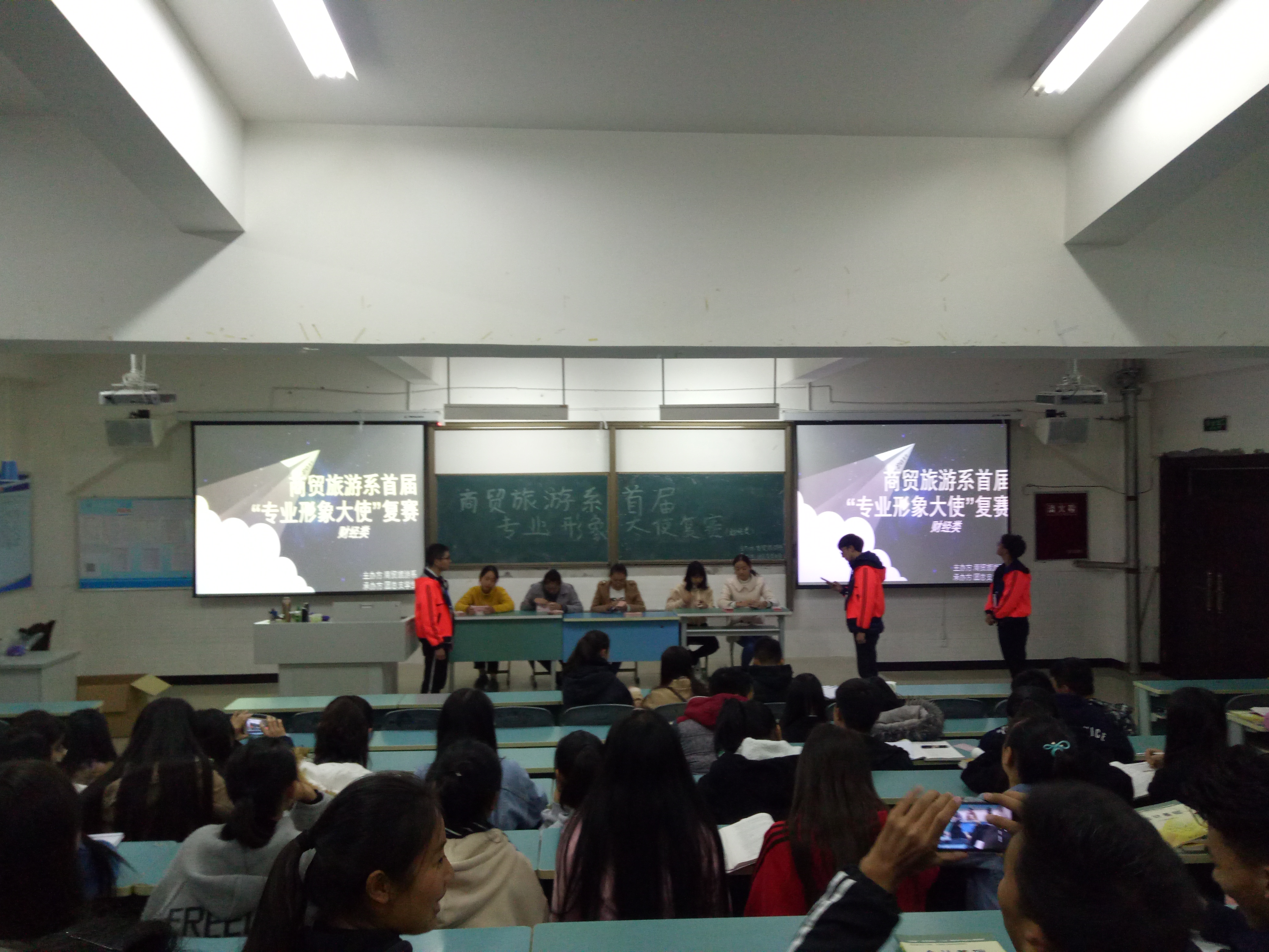 11月22日下午5点50分,商贸旅游系财经类专业形象大使比赛复赛在2215教室开赛,20位选手参加了比赛。
