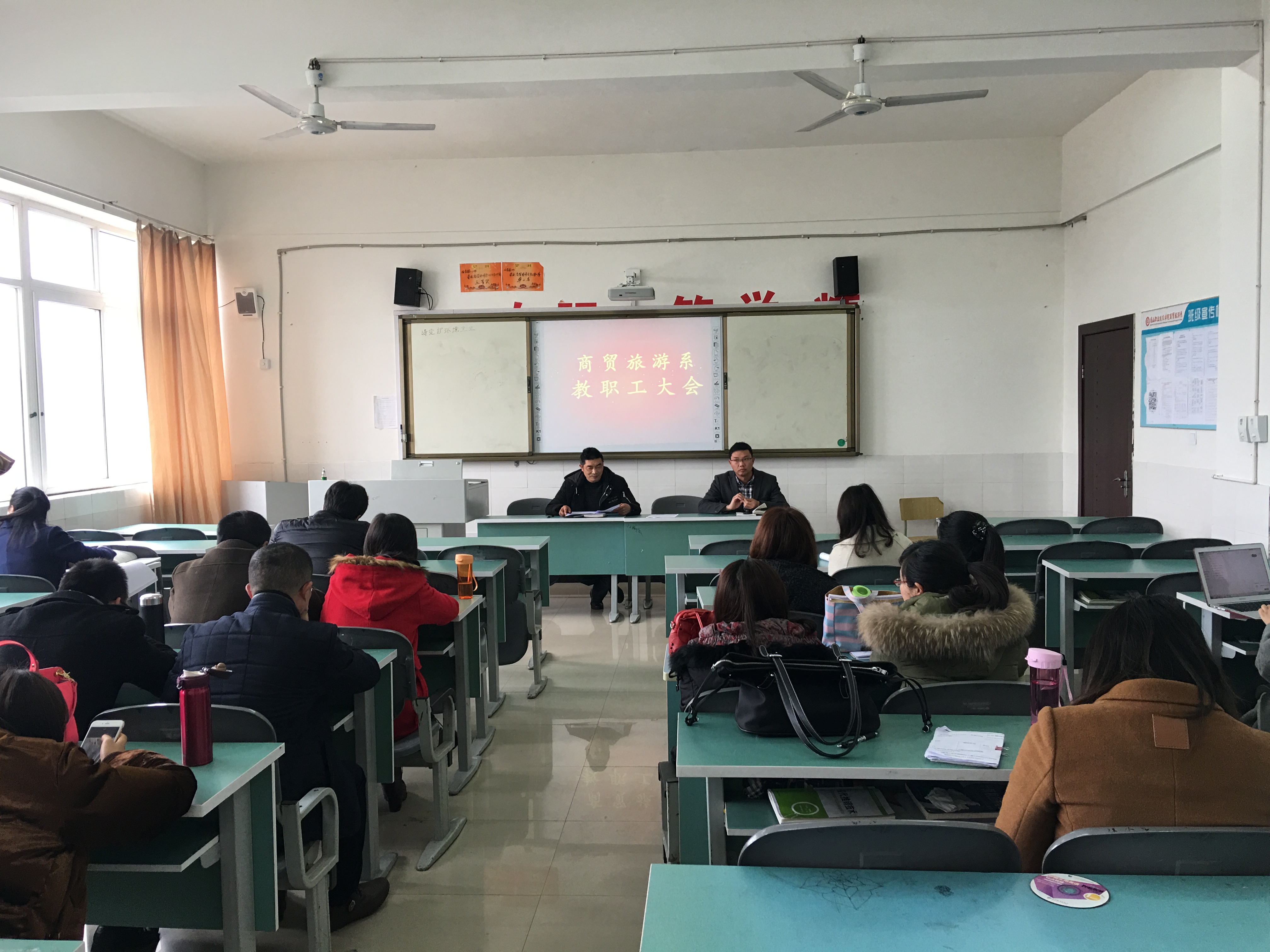 为教师综合考核工作顺利开展,3月15日,商贸旅游系在1411教室召开了全系教职工大会。全系教职工参加此次会议。