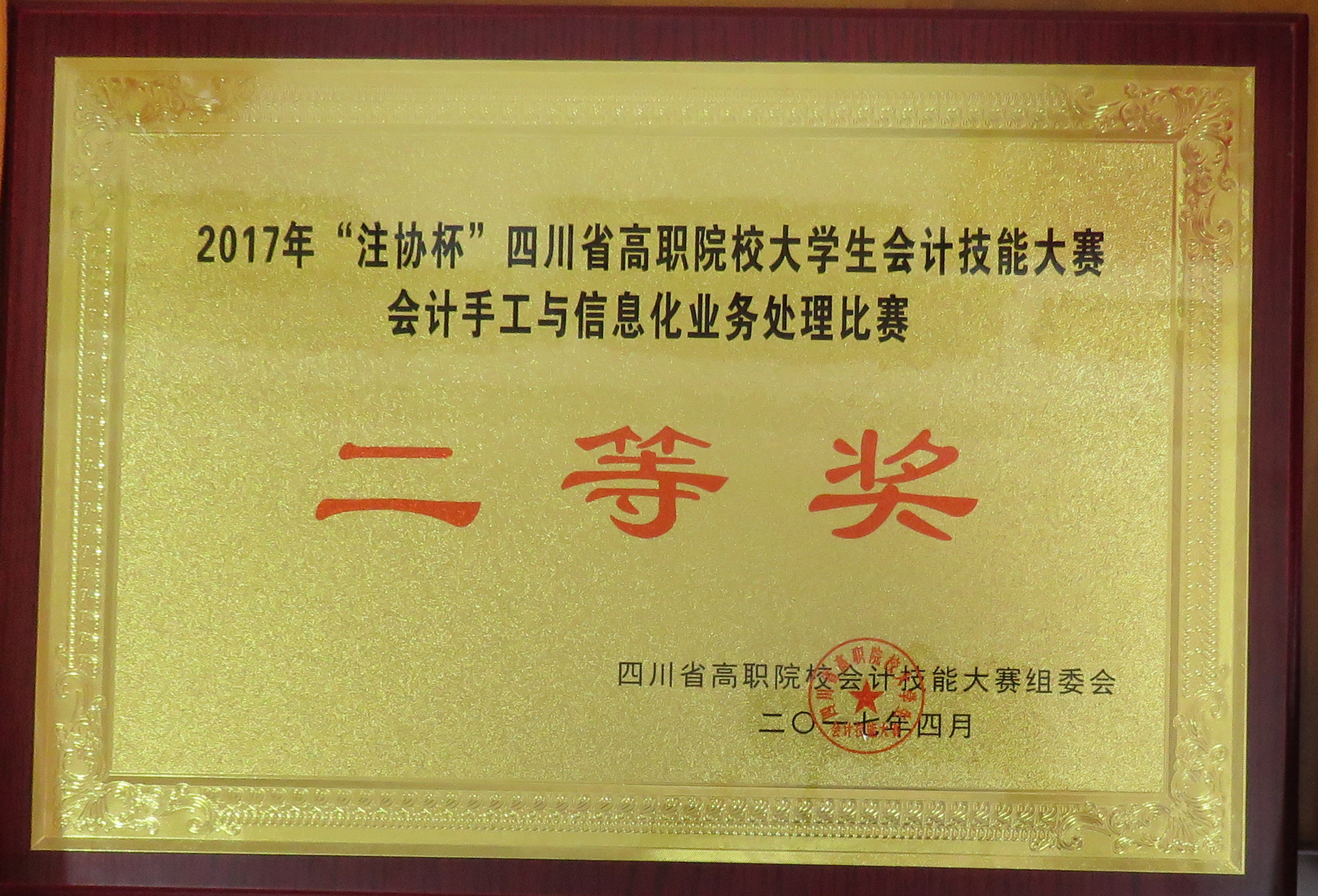 商贸旅游系财经教研室老师指导的“会计手工与信息化业务处理”团队,参加“注协杯”四川省高职院校会计技能大赛“会计手工与信息化业务处理”比赛,与48所高职代表队同台竞技,经过会计业务手工处理、会计信息化等项目的比拼,荣获团体二等奖。