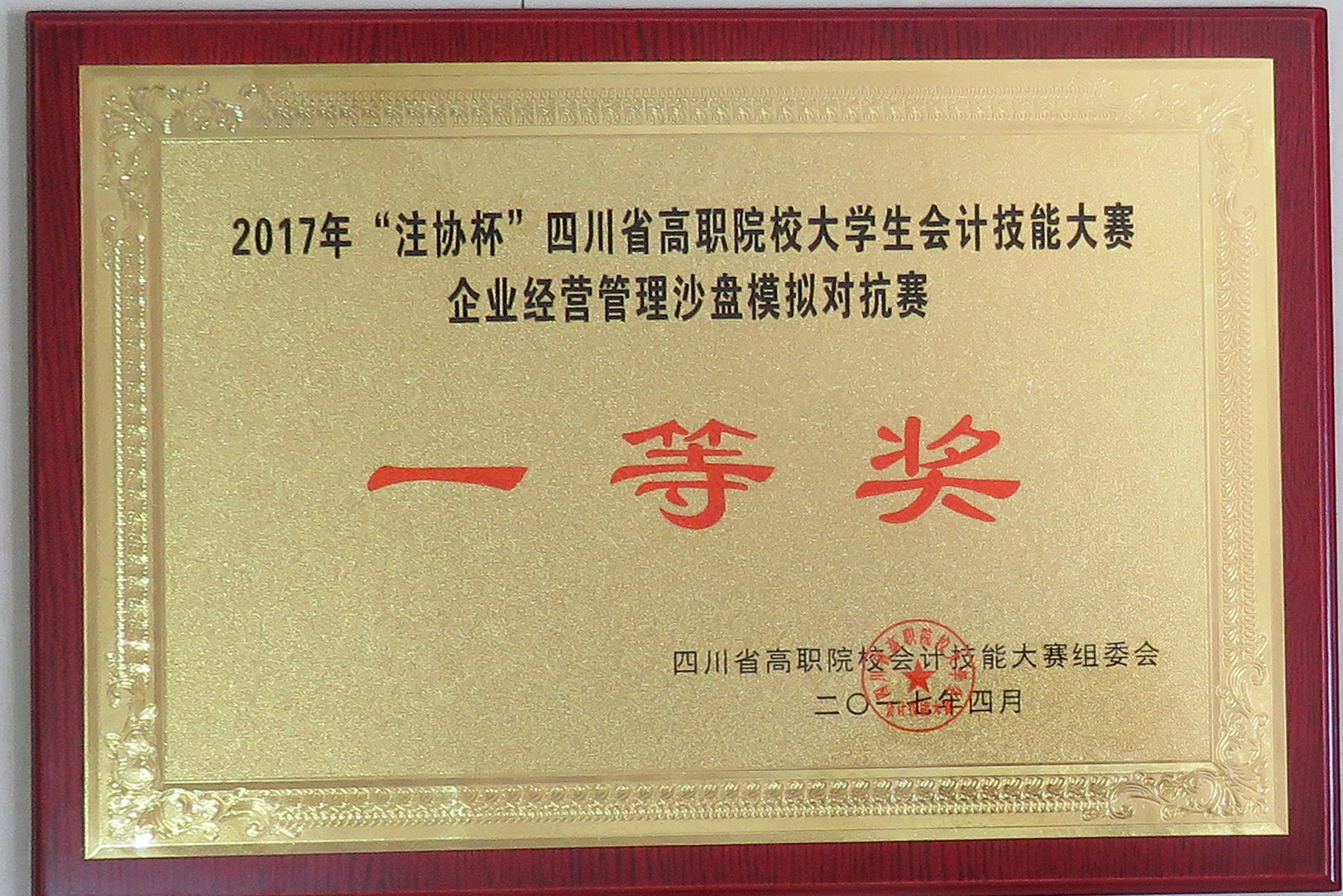 商贸旅游系商贸教研室老师指导的“企业经营管理沙盘模拟对抗赛”团队在2017年“注协杯”四川省高职院校会计技能大赛中,与40所高职代表队同台竞技,荣获团体一等奖,代表四川省参加国赛。