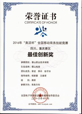 商贸旅游系又传捷报,商贸专业群学子在2016年“奥派杯”全国移动电商技能大赛(川、渝赛区)中喜获佳绩。本次比赛由全国电子商务职业教育教学指导委员会主办。