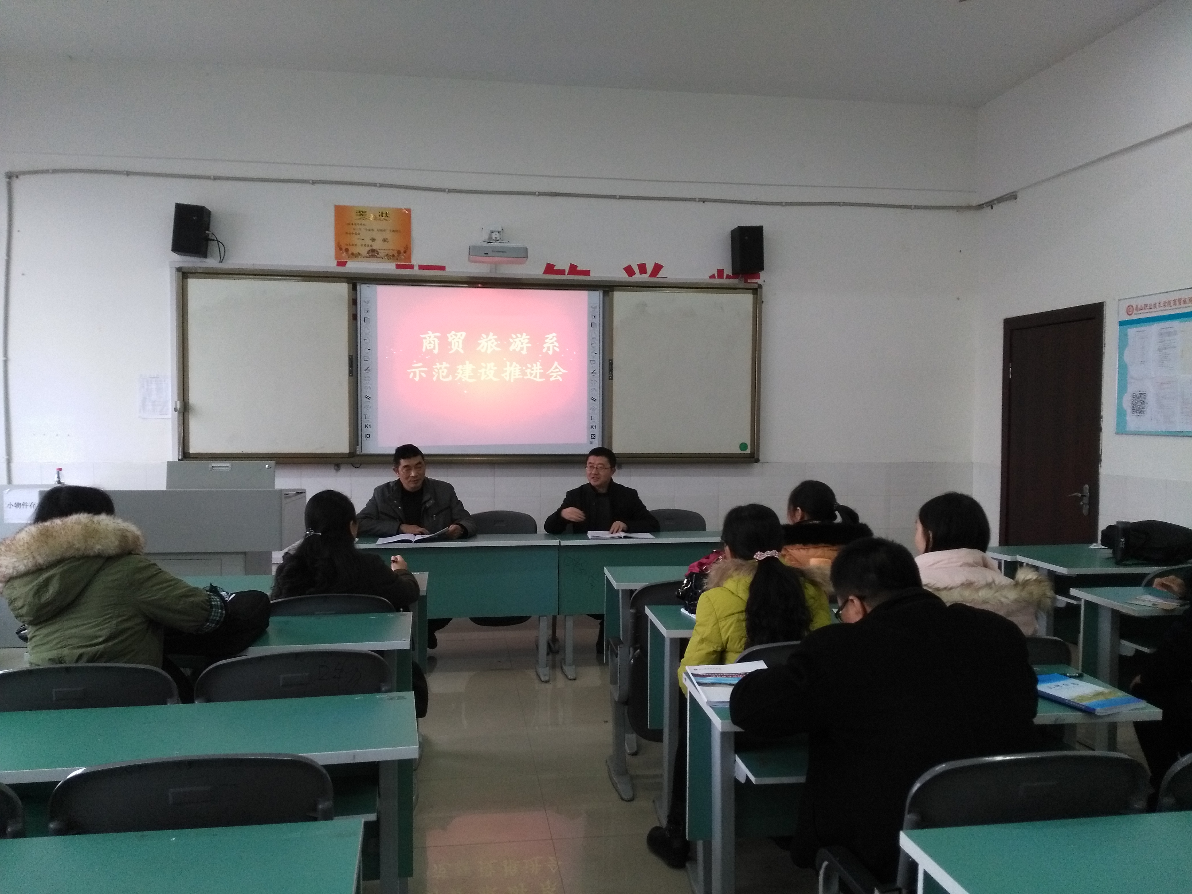 12月14日下午,商贸旅游系示范建设团队在1411教室召开推进会。会议由系主任彭瑞清主持。