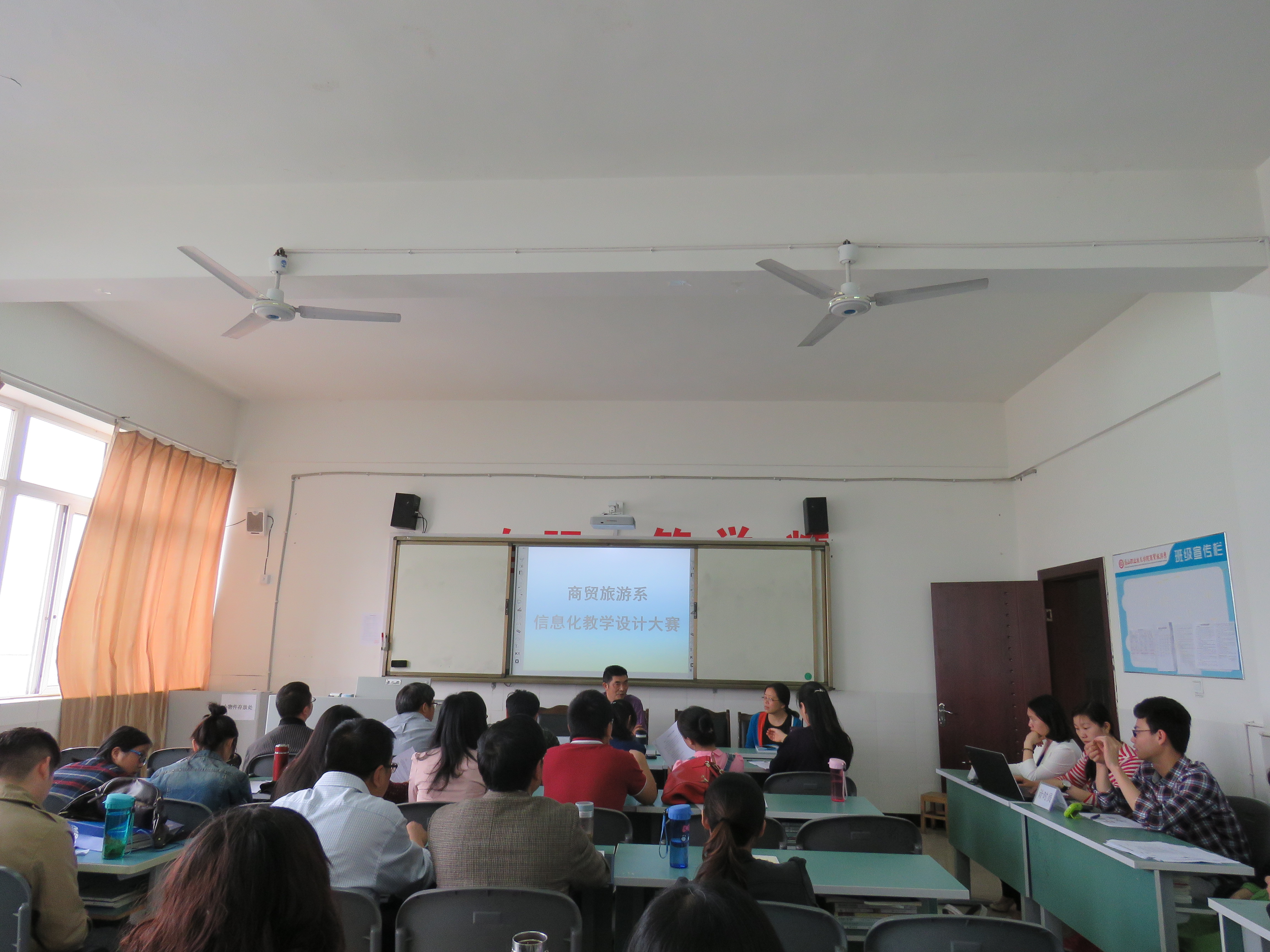4月25日下午,商贸旅游系在1411教室举办信息化教学设计大赛,本次大赛邀请到教务处处长罗树明、副处长张彬、图书馆馆长陶俊辉、财经群专业教研室主任李勇胜、商贸群专业教研室主任王素君、何志文老师、李晓临老师、干红芳老师、杨惠焜老师担任评委。本次比赛由商贸旅游系主任彭瑞清主持。本次比赛共有8个团队参赛。