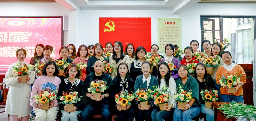 11月5日,学校妇联苏香·智慧媛项目在文安东路社区新时代文明实践站开展了“传递幸福花,文明美满家”插花艺术培训活动,我院师生积极参与活动。