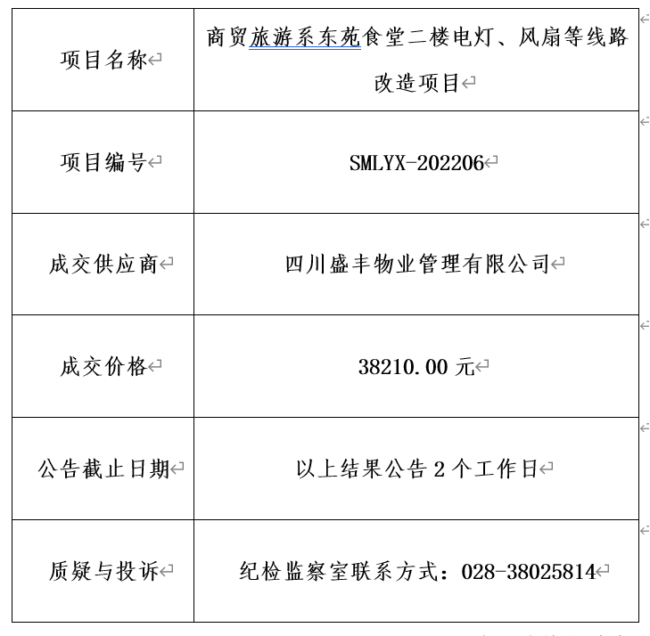 眉山职业技术学院商贸旅游系东苑食堂二楼电灯、风扇等线路改造项目询价结果公示