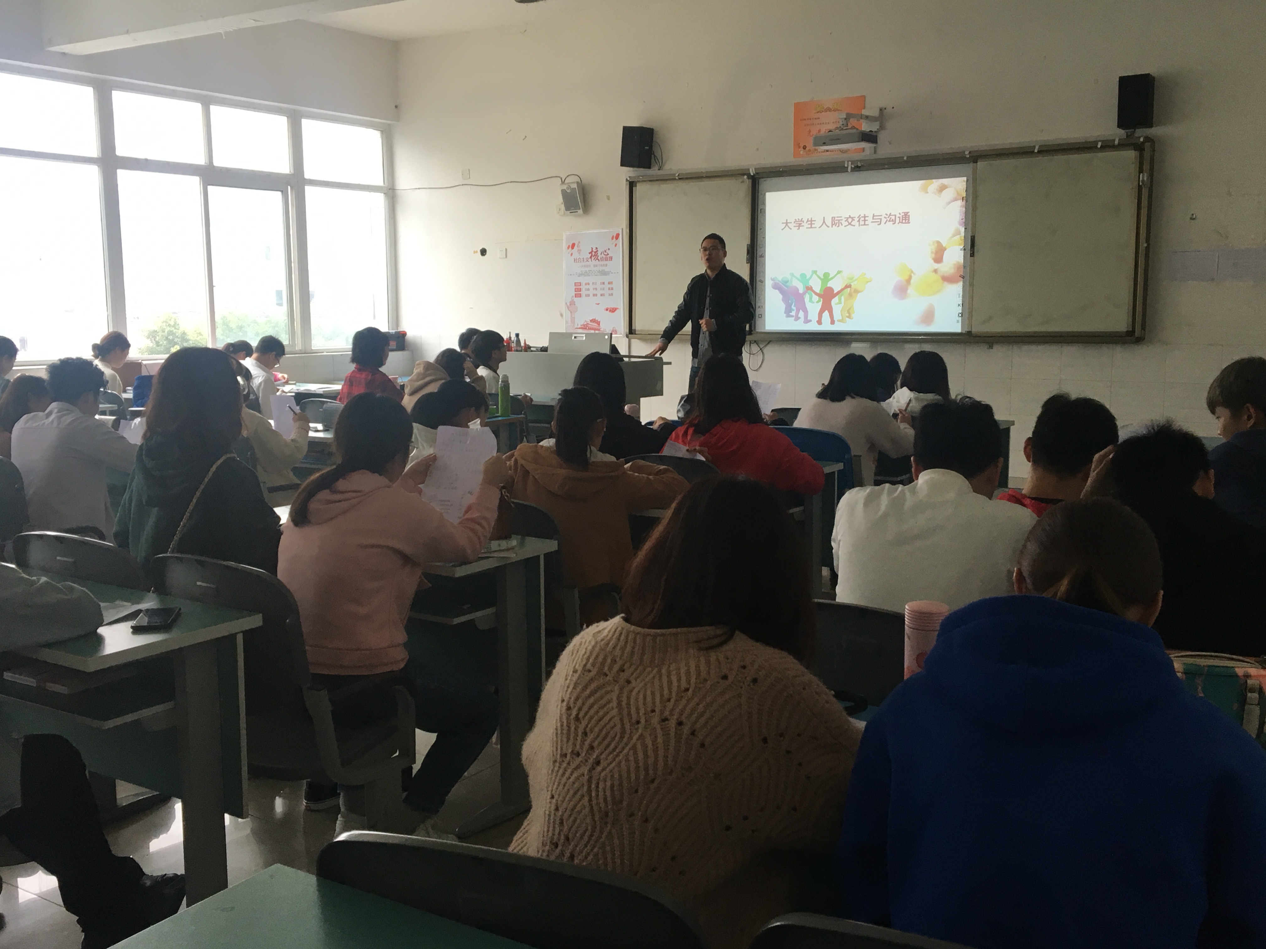 大学生是未来社会的建设者,重视和探究大学生的心理状态,引导大学生排解心理障碍,培养大学生健康的心理素质是高校教育的一项重要任务。为加强大学生心理健康教育,促进大学生德智体美等健康发展,2018年10月29日下午,辅导员安允森在所带班级中进行心理健康教育课程。