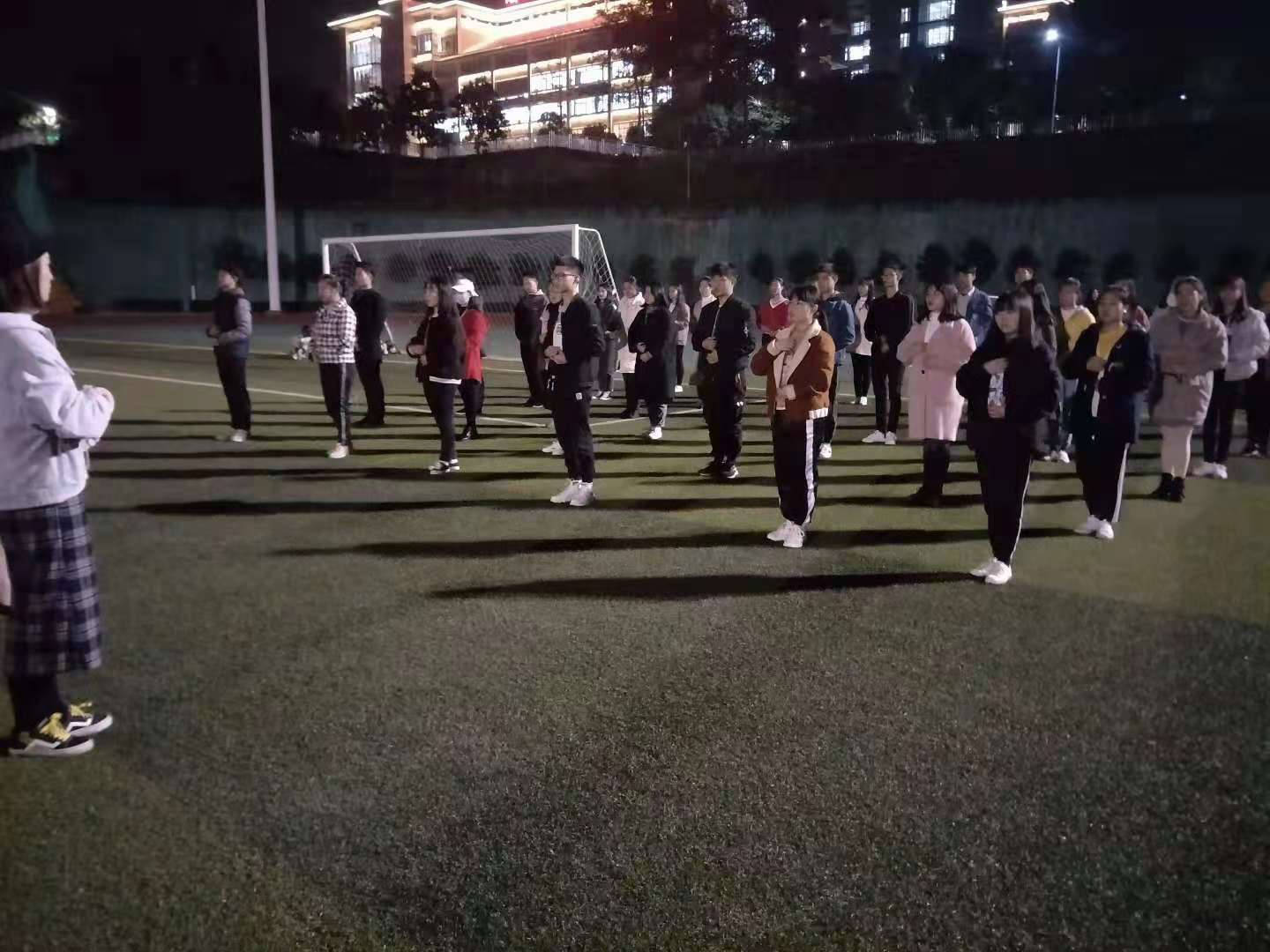 同学们利用晚自习和课余时间加紧时间练习。11月8日晚自习,辅导员李佳芳到操场对各班礼仪操练习情况进行检查。在指导过程中,李佳芳强调,同学们应认真练习,正确认识本次比赛的意义,并对同学们表示鼓励,希望同学们能以饱满的精神状态参赛,取得好成绩,展现出当代大学生良好的精神风貌。