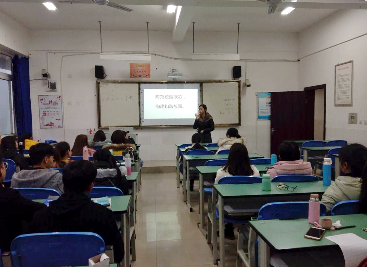 为了构建平安和谐校园,防范校园欺凌,转化学生的不良行为,帮助同学们形成了正确价值信念。11月28日晚自习辅导员李佳芳等进行主题为“防范校园欺凌,构建和谐校园”的班会。