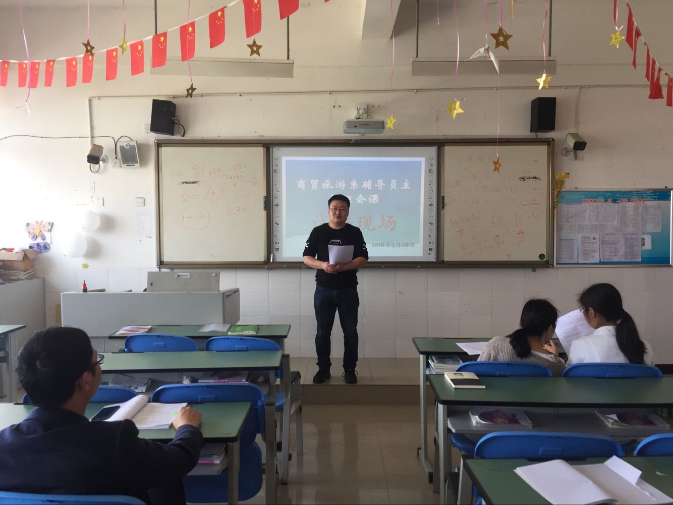 为了提升辅导员的业务素质和工作能力,提高辅导员讲授主题班会课的水平,商贸旅游系在3月28日、4月12日举行了2次主题班会课试讲活动。商贸旅游系党总支副书记杨光辉、辅导员等学管人员全程参加了活动。