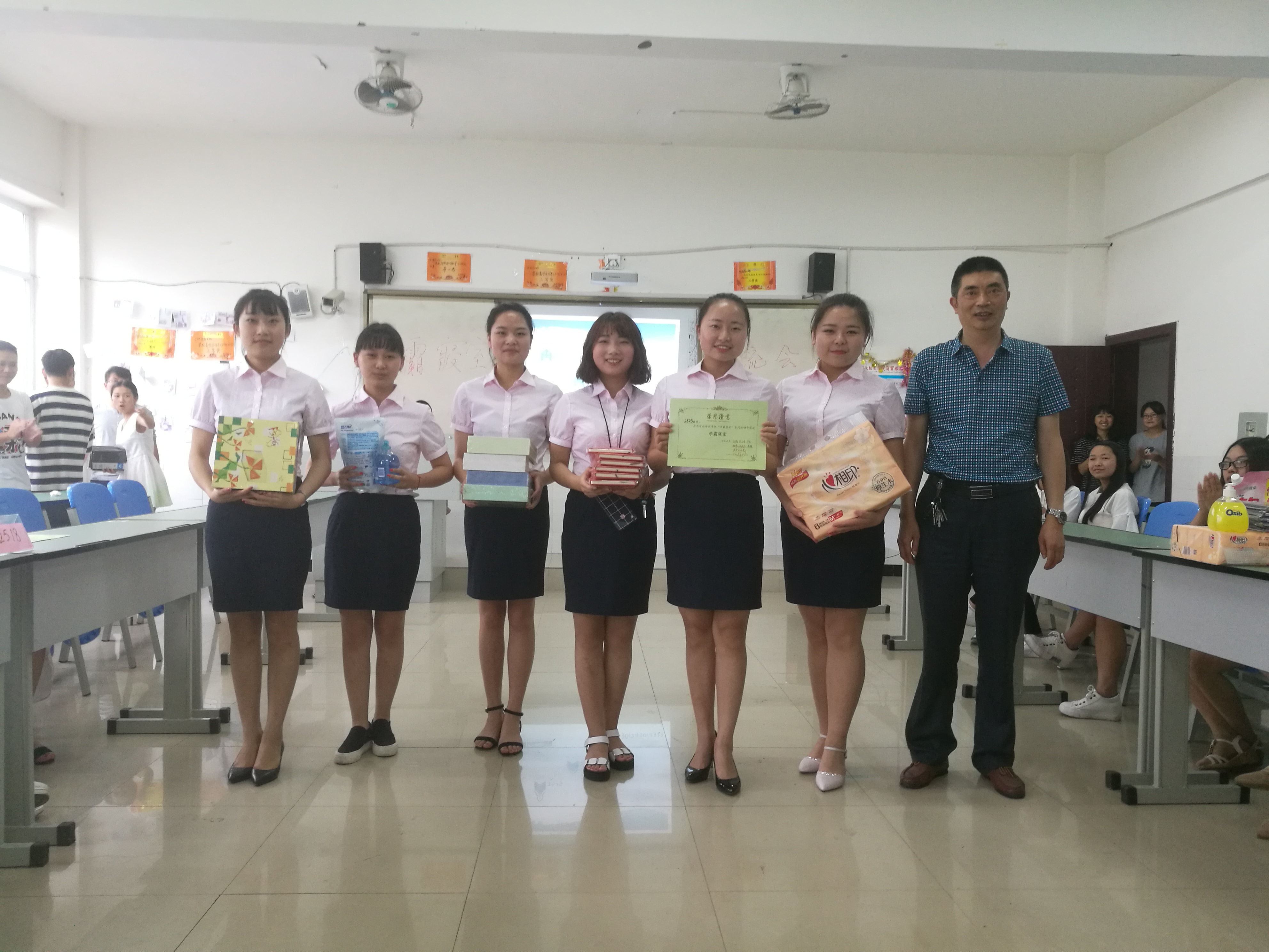 6月5日商贸旅游系在1504教室举行了颁奖仪式和交流会,商贸旅游系主任彭瑞清、辅导员、获奖寝室同学及各班代表参加,颁奖仪式和交流会由团总支书记李一民主持。交流会上,获奖寝室PPT展示、获奖代表发言、同学提问等环节再次展现了商贸学子的风采。彭瑞清为“学霸寝室”颁奖,辅导员余涛、周怡分别为“模范寝室”和“优秀寝室”颁奖。