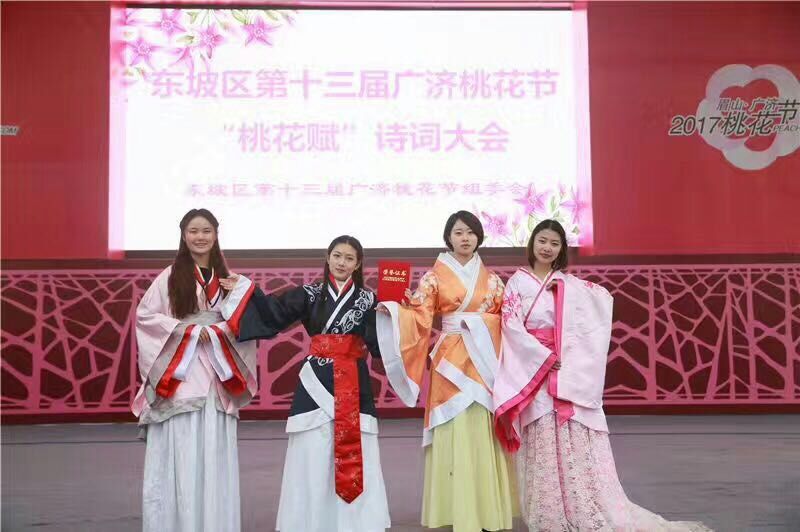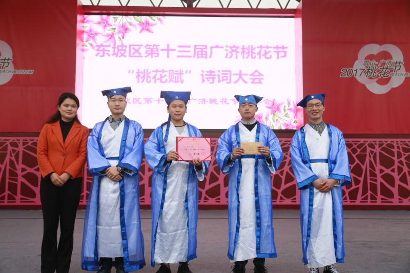 3月12日,商贸旅游系学子参加东坡区第十三届广济桃花节“桃花赋”诗词大会,大放异彩,勇夺一等奖。