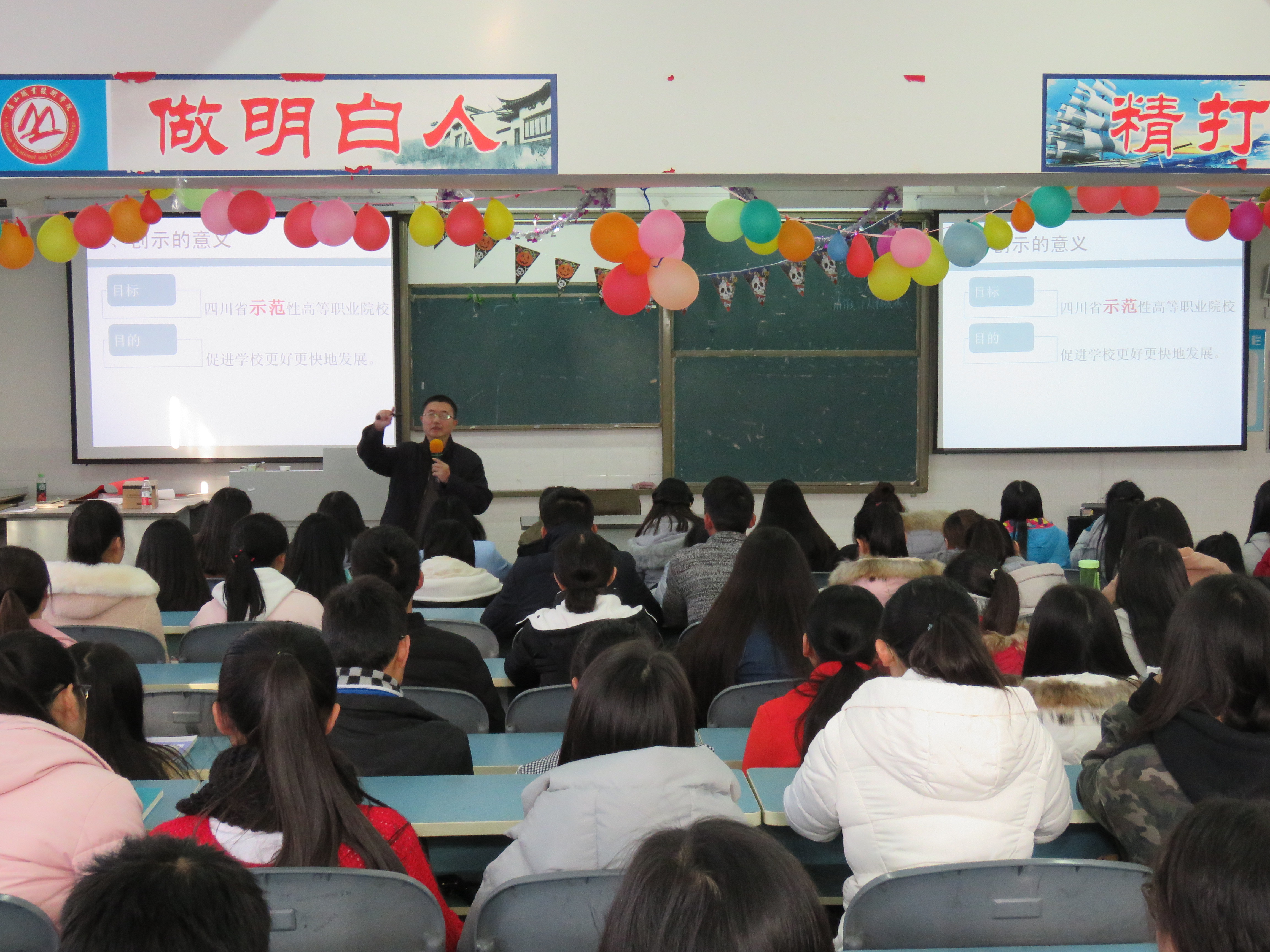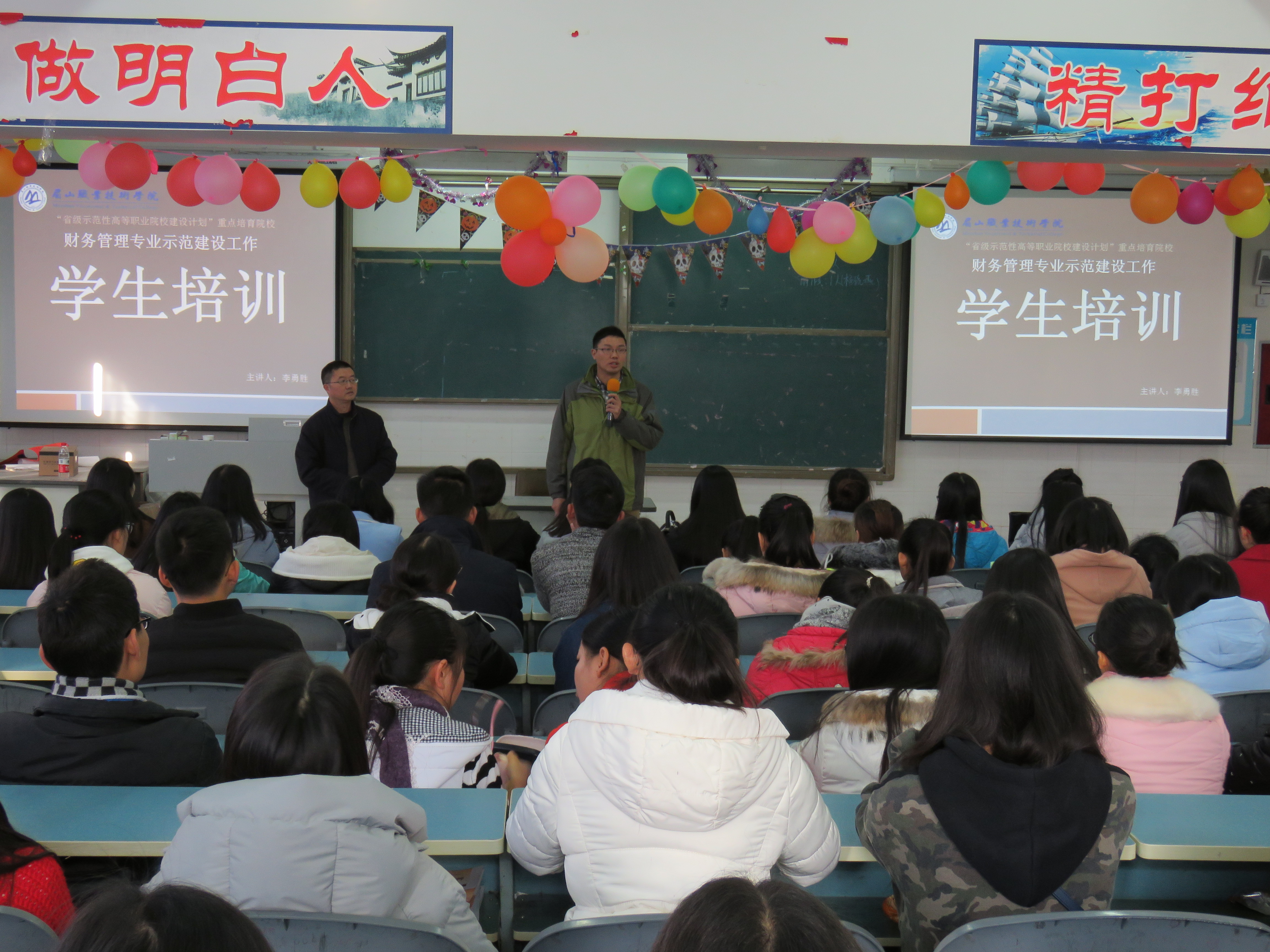 为了迎接示范建设工作检查,2016年11月29日下午3点50分,商贸旅游系在2113举办了“创示”迎检知识培训会,会议由系党总支副书记杨光辉同志主持,财经专业群教研室主任李勇胜副教授主讲,系团总支书记李一民、辅导员周敏、周怡和财务会计专业200余名学生参加了培训会。