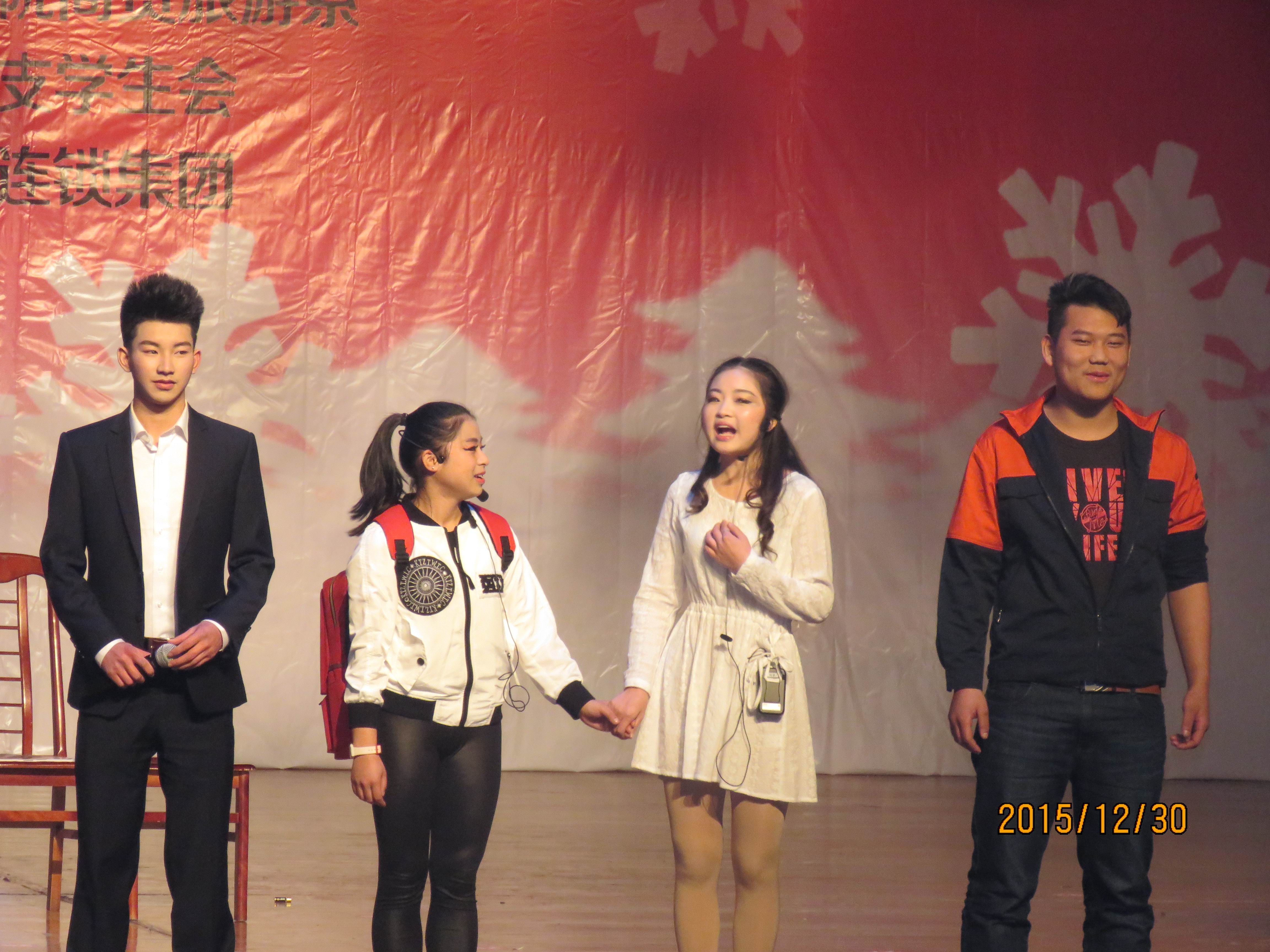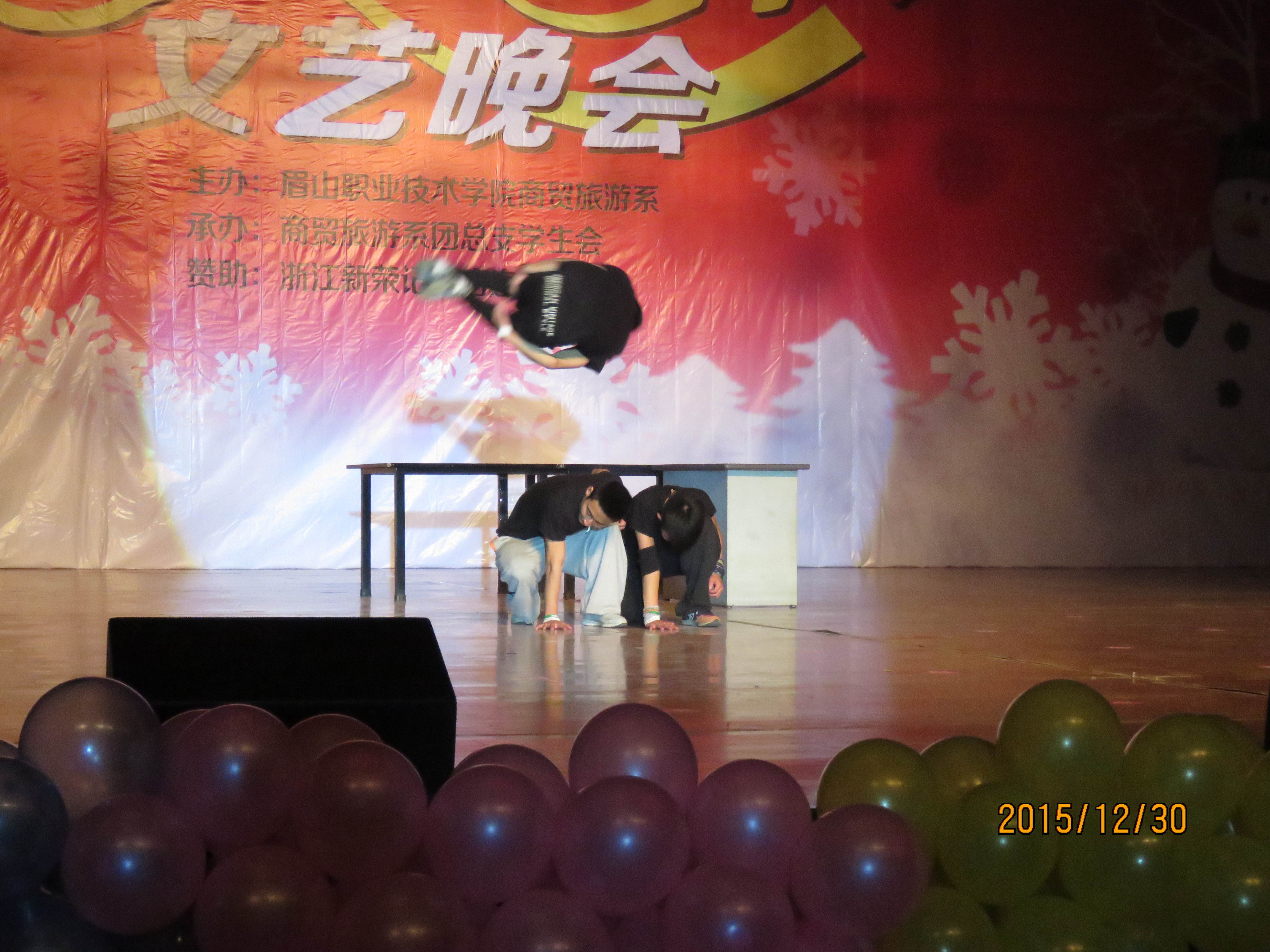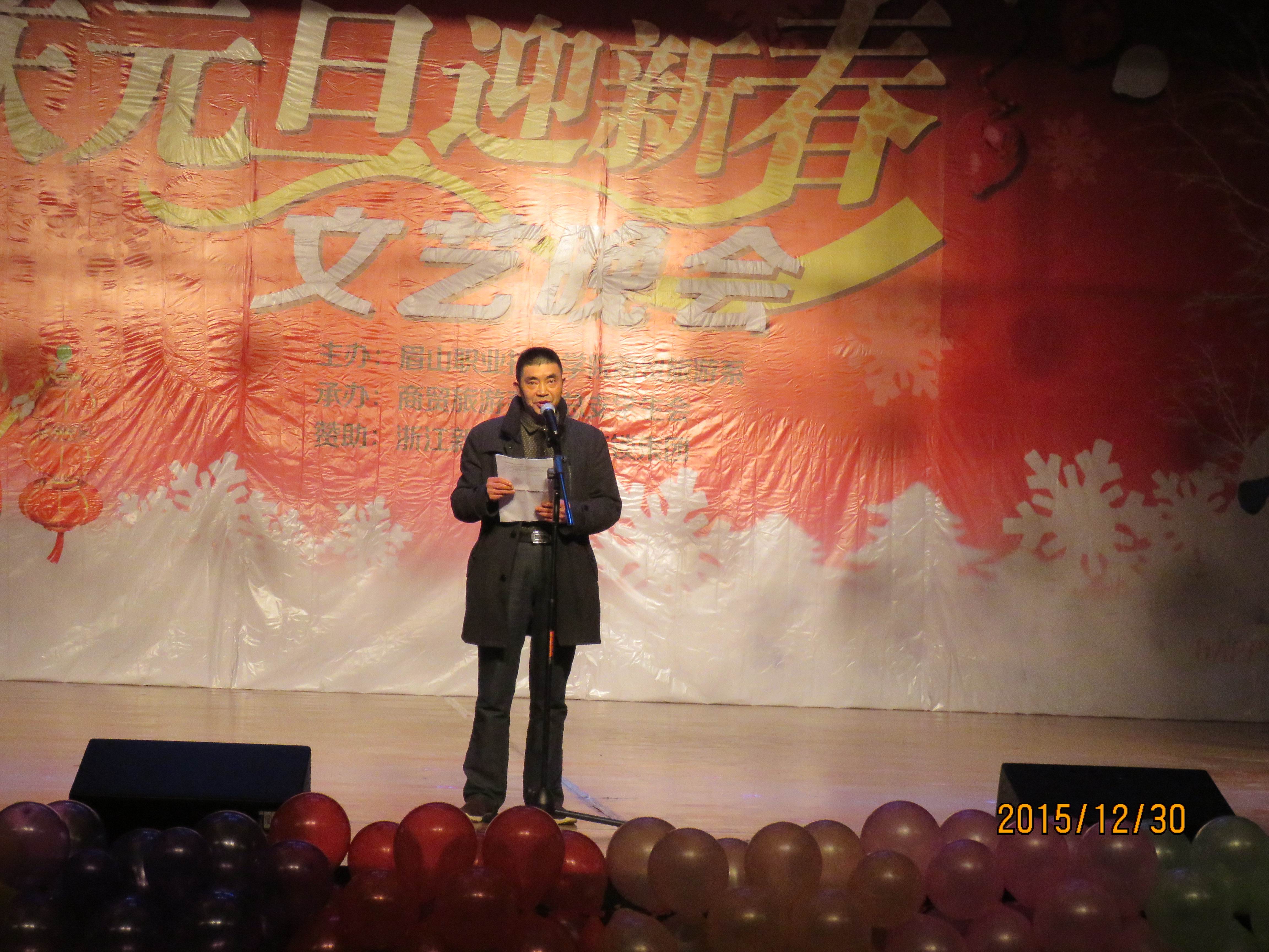 商贸旅游系2016年“庆元旦.迎新春”文艺晚会30日晚在艺术中心举行。学院党委副书记刘晓琼、院工会主席胡洪安、农业技术系党总支书记赵建聪、商贸旅游系主任彭瑞清、商贸旅游系党总支副书记杨光辉等,与商贸旅游系、文化艺术系千余名师生一起观看了演出,喜迎新年的到来。