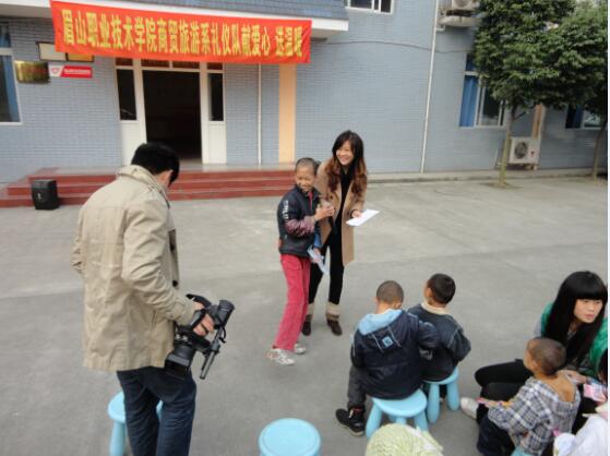 眉山电视台对此次献爱心、送温暖的慰问活动进行了专门报道,并就眉职院商贸旅游举办此次活动的目的专门采访了商贸旅游系的系主任彭瑞清。彭主任表示商贸旅游系组织此次活动是为了对学生进行思想政治教育,尤其对90后的大学生进行关爱他人、感恩社会的教育非常有必要。彭主任还说这次活动是眉职院商贸旅游系对学生进行的德育教育的一个新开端,今后还要组织类似的慰问活动进社区、敬老院等德育教育基地,加强现代大学生的德育教育。