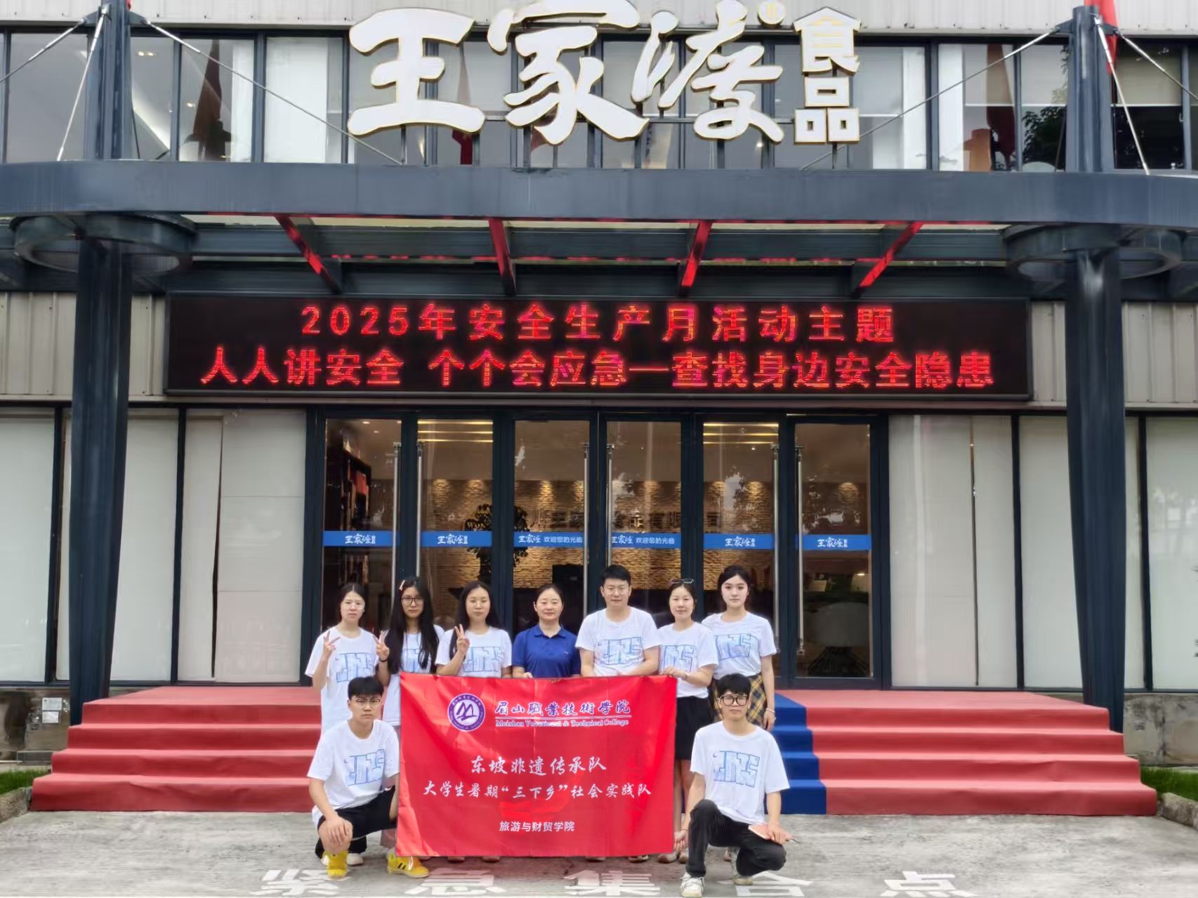 为深入挖掘和传承东坡非遗文化,助力乡村振兴,7月8日,旅游与财贸学院2025年暑期“三下乡”社会实践团队“东坡非遗传承队”前往校企合作企业四川王家渡食品股份有限公司,开展以“东坡肘子非遗市场调研”为主题的实践活动。此次活动旨在通过实地走访、问卷调查和访谈等形式,了解东坡肘子的非遗技艺传承现状及市场发展潜力,为地方非遗文化的保护与创新提供青年智慧。
