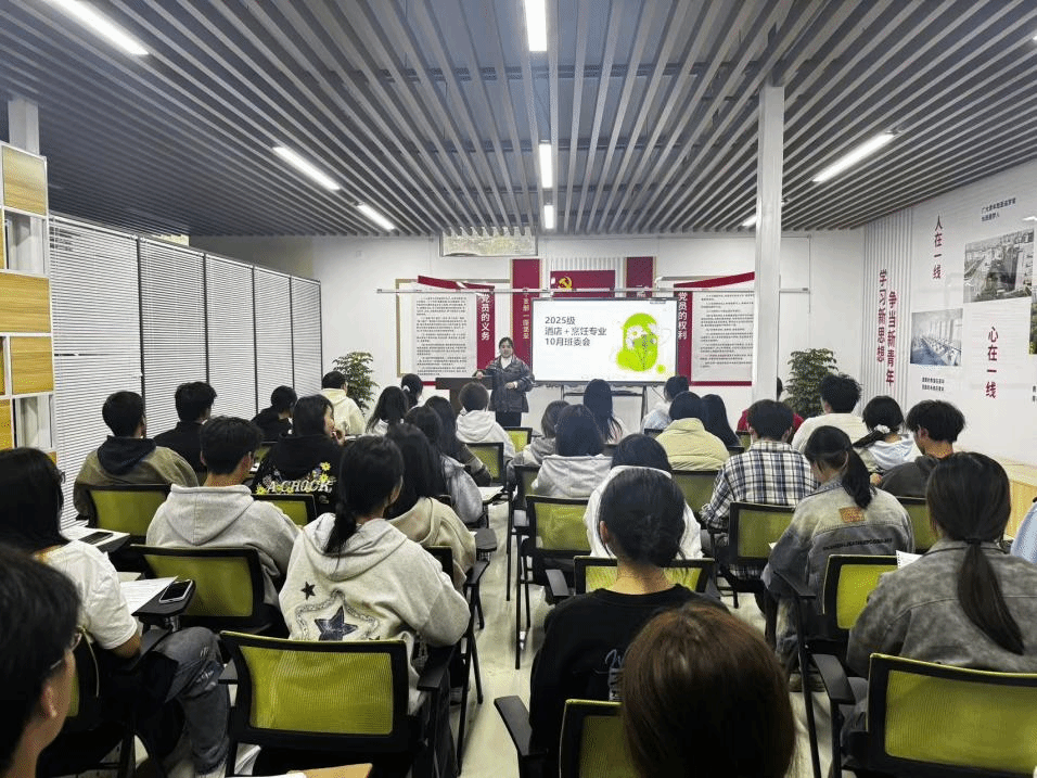 10月29日,旅游与财贸学院辅导员老师陈恬组织2025级酒店管理与数字化运营123班及烹饪工艺与营养3班的全体班委,在西苑“一站式”学生社区活动中心召开了班级干部联合会议。本次会议旨在通过系统总结前期工作,量化工作成果,精准剖析问题,为后续班级工作的高效开展奠定坚实基础。