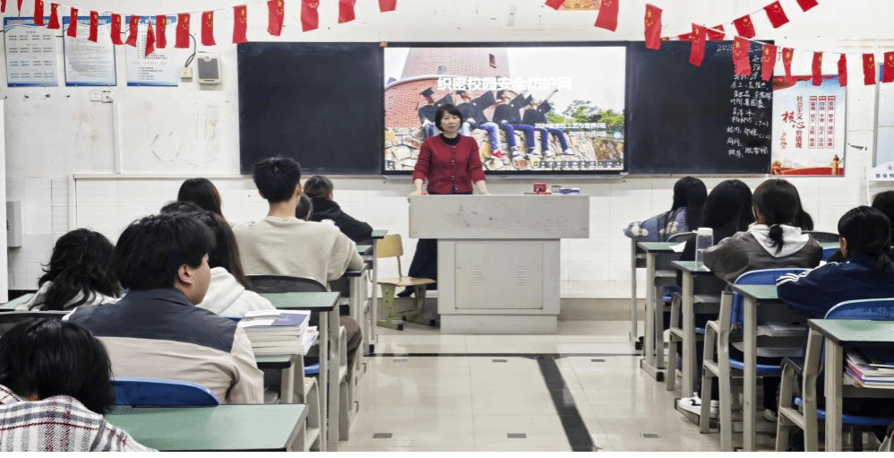 10月22日,旅游与财贸学院兼职班主任杨丽红在2508教室开展“织密校园安全防护网”主题班会,2024级烹饪工艺与营养专业2班全体同学参加。