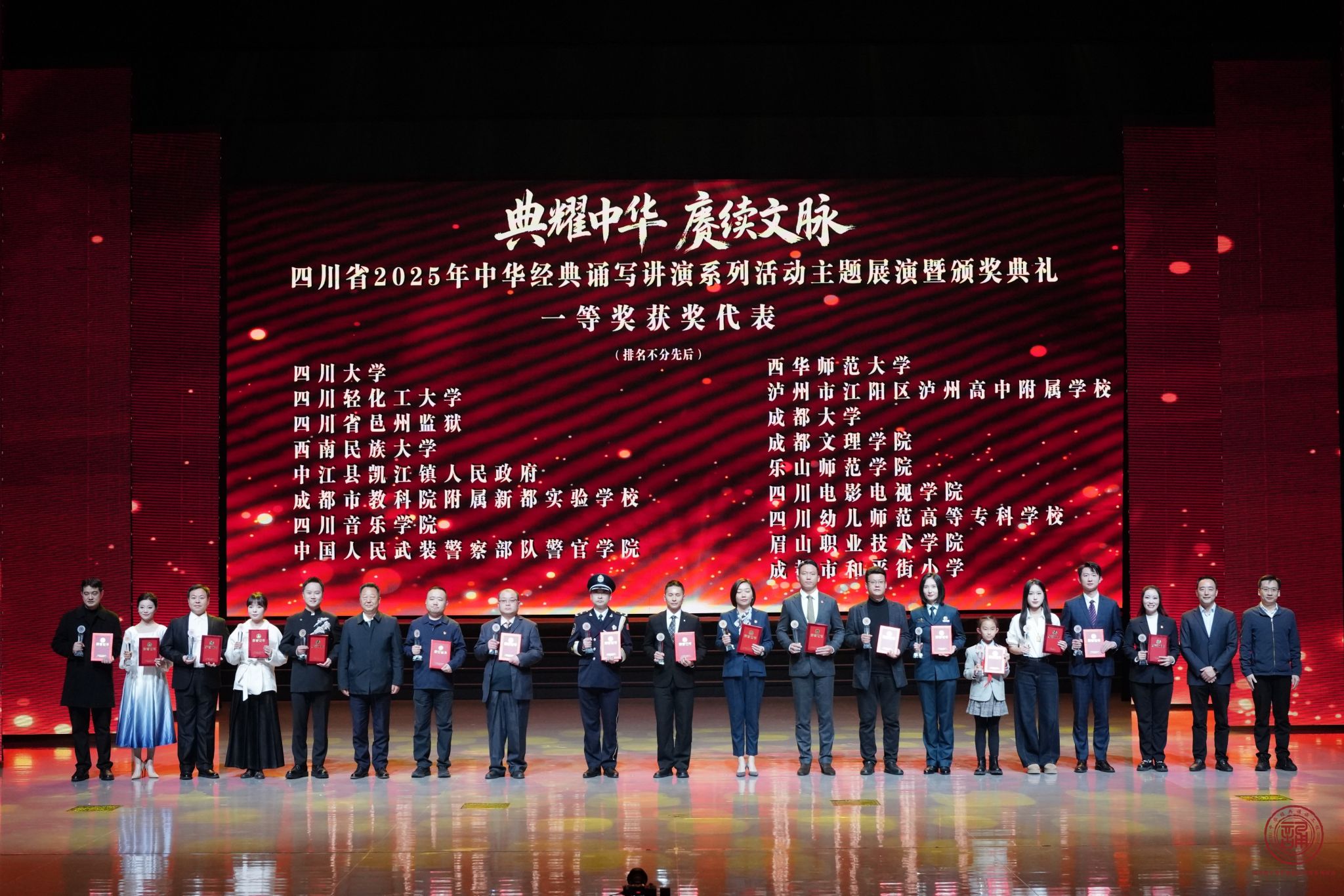 11月28日,由四川省教育厅、省委宣传部等部门联合主办的2025年中华经典诵写讲演系列活动主题展演暨颁奖典礼在成都大学举行,我校旅游与财贸学院学子创作的《山河咏叹·东坡治世图》作为大赛一等奖作品入围展演,受现场表彰。