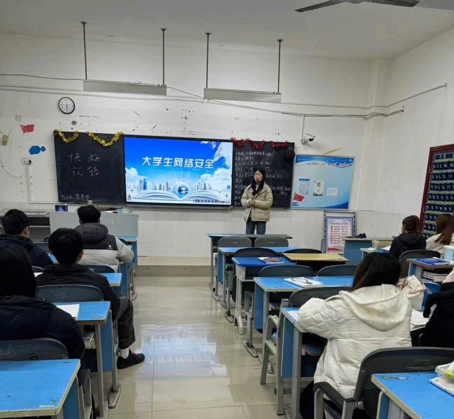 11月24日,为增强电商专业学生的网络安全意识,旅游与财贸学院兼职班主任肖娴在2025级电子商务专业1班开展了一场以网络安全为主题的特色班会。