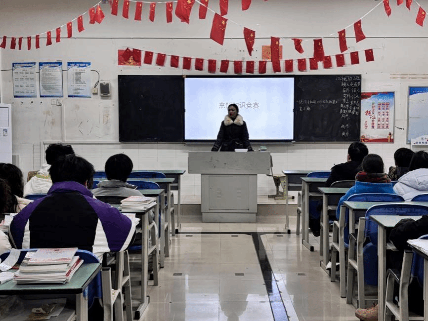 12月23日,旅游与财贸学院专任教师、辅导员雷琴在2502教室为2024级烹饪工艺与营养专业2班学生开展烹饪知识竞赛活动。