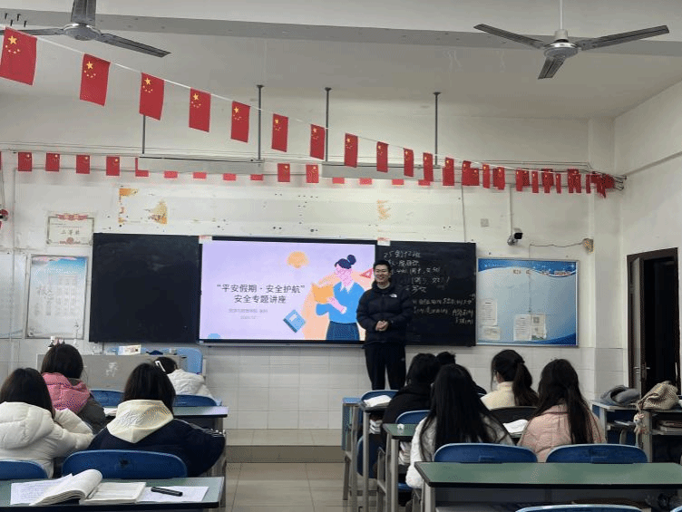 12月25日,旅游与财贸学院专职组织员、辅导员老师张科在2209教室为2025级大数据与会计专业2班全体同学开展以“平安假期·安全护航”为主题的假期安全专题讲座,为同学们的假期生活保驾护航。