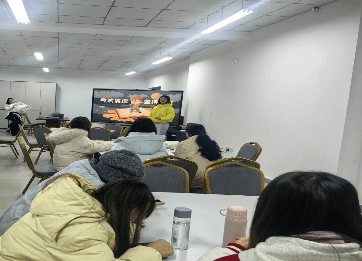 12月26日,旅游与财贸学院兼职班主任夏颖组织2024级酒店管理与数字化运营专业1班同学在公共实训中心3栋208教室开展“阳光心态从容应考”主题班会。