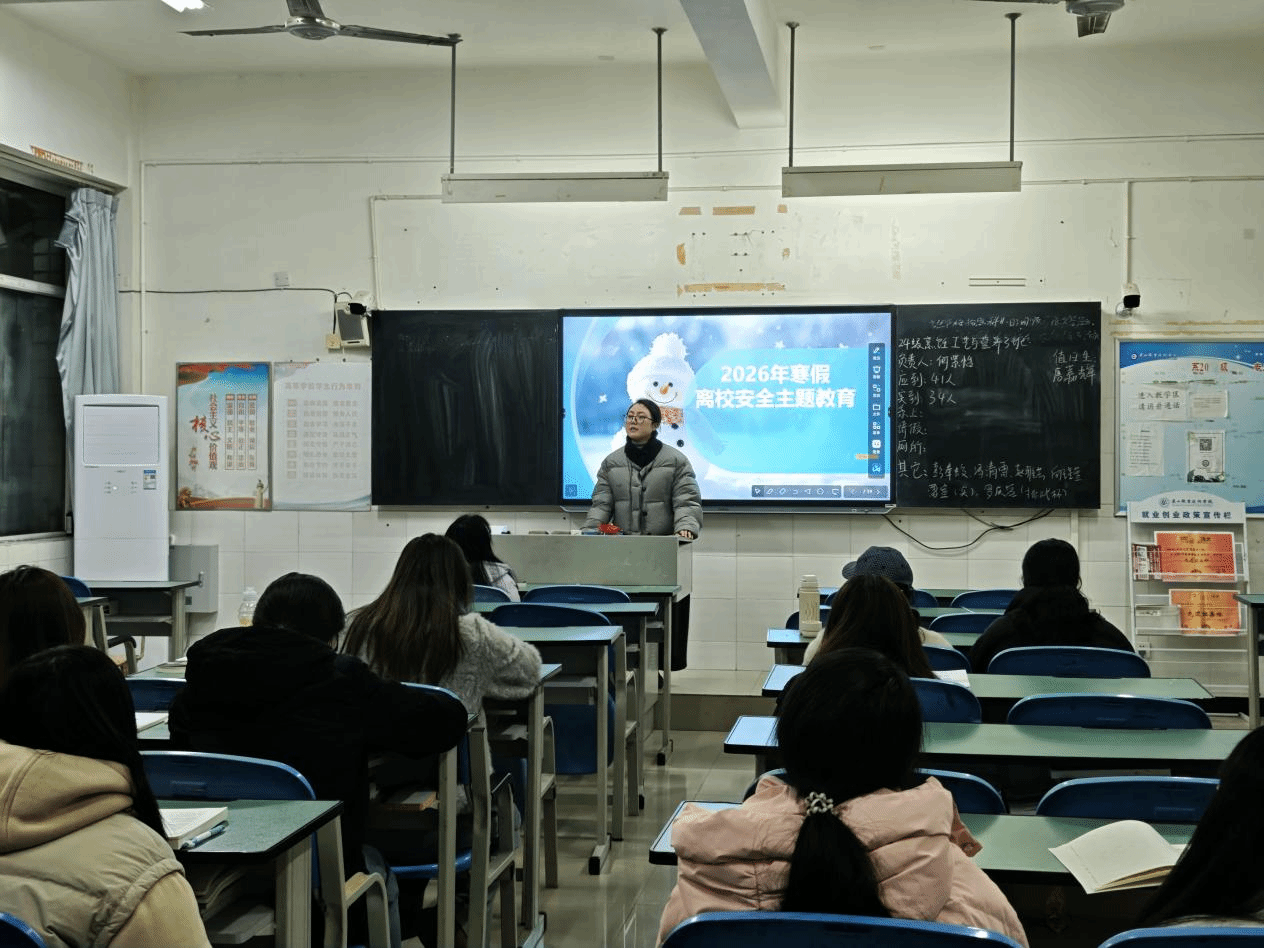 1月11日,旅游与财贸学院辅导员侯佳敏在2024级烹饪工艺与营养专业各班级教室开展寒假离校安全主题教育活动。