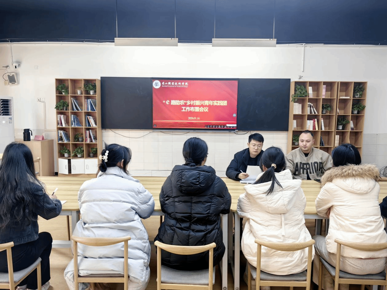 1月20日,旅游与财贸学院“e路助农”乡村振兴青年实践团在2208会议室举行2026年寒假“返家乡”社会实践活动启动会,全体指导老师及实践团成员参加会议。