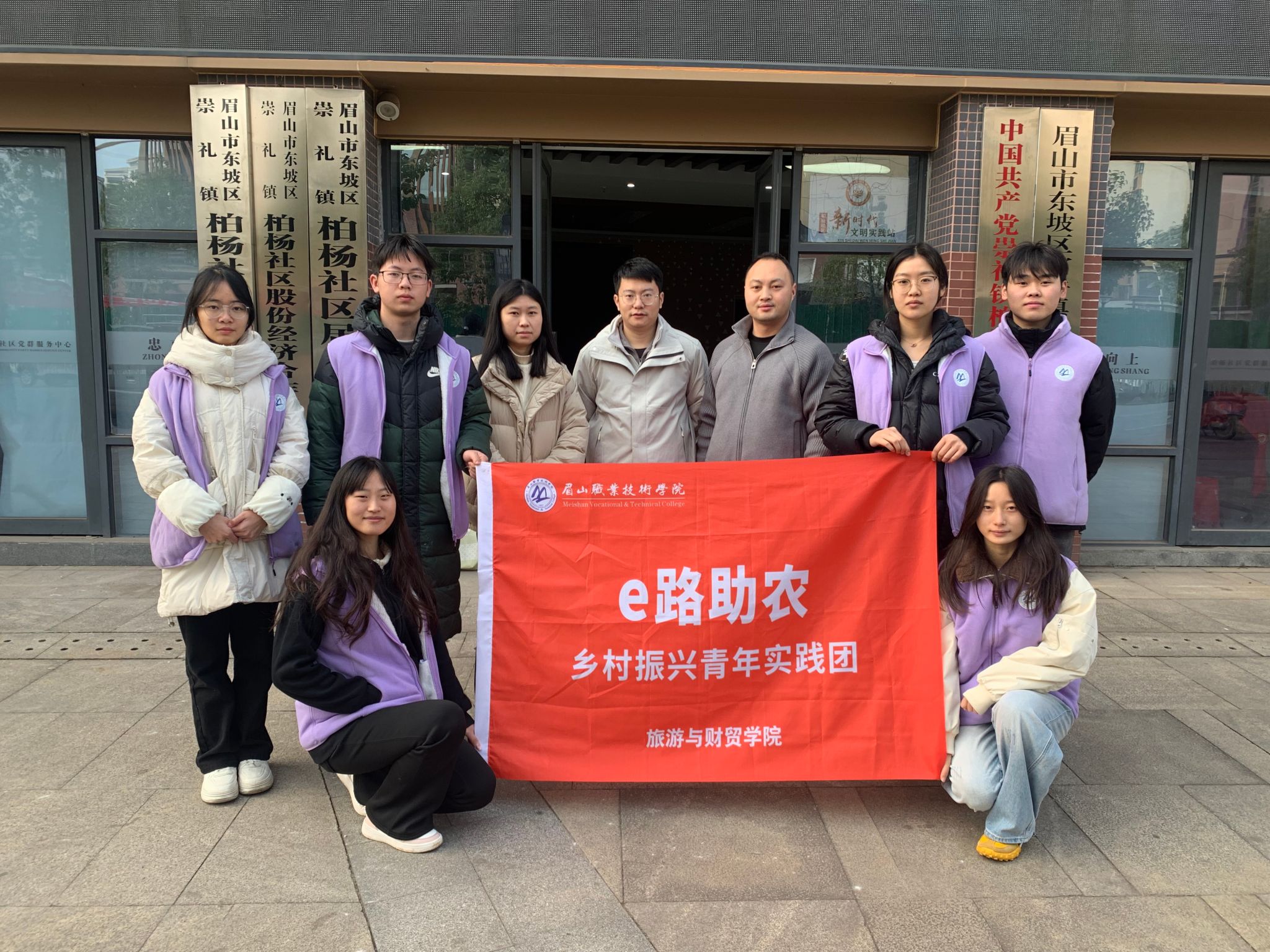1月23日,旅游与财贸学院“e路助农”实践团在指导老师林国曦、陈敬敏、周健宇及电子商务专业教师肖娴带领下,赴东坡区富牛镇柏杨社区开展发展调研。