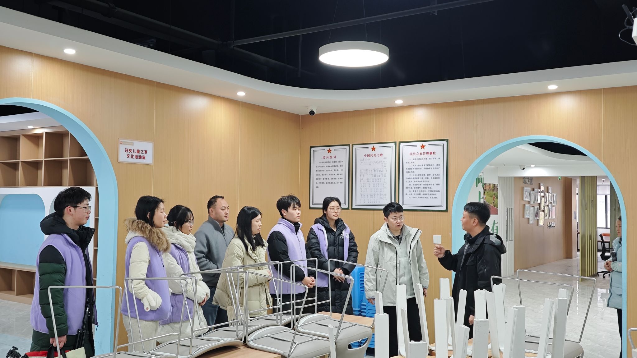 社区党委书记夏巍热情接待,为实践团作详细讲解并开展深入交流。团队先后走访社区公共、办公及服务空间,实地察看由架空层改造而成的亲子乐园、图书角等便民设施,感受高效务实的社区服务作风;重点了解社区数字化幸福康养优享系统建设成效、电商助农平台发展现状及党群文体活动开展情况。作为校地合作重要实践基地,柏杨社区构建“高校赋能治理+社区反哺育人”双向机制,吸引多所高校学生参与便民服务、技能宣讲等工作,形成特色鲜明的共建模式。