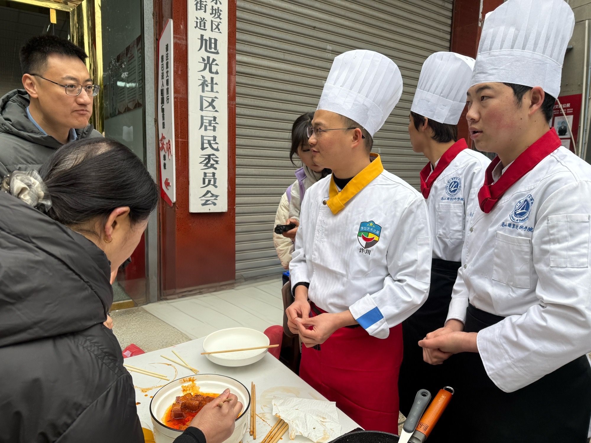 1月24日,旅游与财贸学院“返乡寻味”东坡饮食文化传承队联合绵阳职业技术学院眉山籍学生,走进旭光社区,开展非遗技艺“东坡肉”学习体验活动。