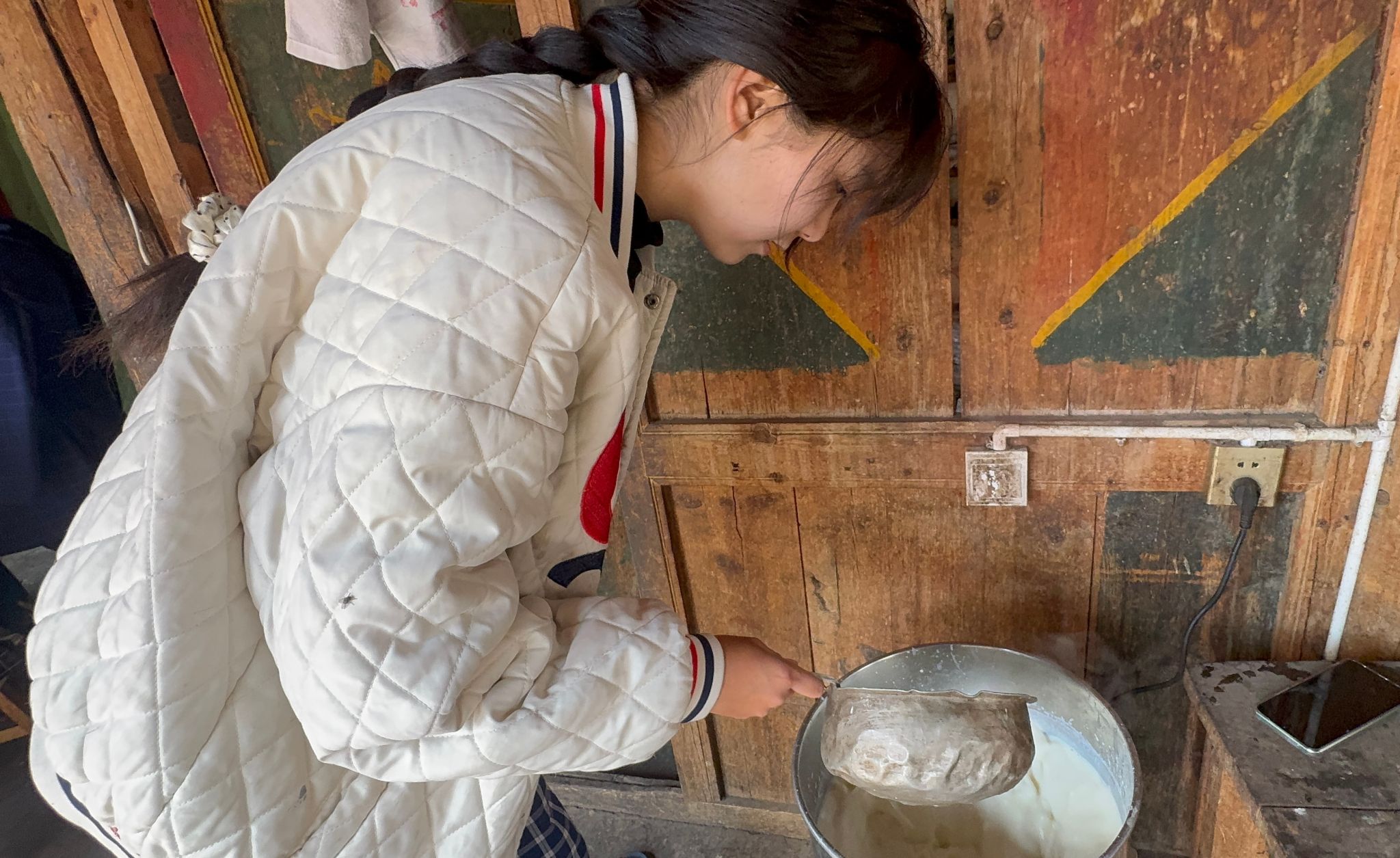 仁青志玛,旅游与财贸学院2025级大数据与会计专业1班学生、“返乡寻味”东坡饮食文化传承队成员。仁青志玛返回家乡甘孜州后,以家乡非遗美食酥油为切入点,利用寒假时间走进高原牧场,沉浸式体验酥油制作技艺,在烟火气中感悟非遗千年底蕴,在实践中守护民族文化根脉。作为一名土生土长的藏族儿女,仁青志玛自幼受祖辈熏陶,对藏民族饮食文化与传统技艺满怀热爱。寒假期间,仁青志玛专程前往家乡牧场,跟随牧人叔叔系统学习传统手工酥油的完整制作流程。从鲜奶过滤、加热发酵,到反复抽打分离油脂,再到冷却塑形、精炼提纯,每一道工序都凝聚着祖辈传承的匠心。在牧场牧人的悉心指导下,她亲手参与制作,真切体会到传统技艺的严谨与珍贵,也读懂了高原儿女与自然共生的质朴哲学。实践恰逢新春佳节,仁青志玛将亲手制作的酥油带回家,与家人共同烹制酥油茶、酥油炖鸡、酥油拌糌粑等传统美食。热气腾腾的酥油茶香气四溢,酥香浓郁的佳肴饱含温情,一家人围坐共享,在舌尖美味中诉说团圆喜悦,在传统食俗里传承民族习俗。这不仅是一次味蕾的满足,更是一场非遗文化的家庭传承,让千年技艺在新春团圆中焕发新生。