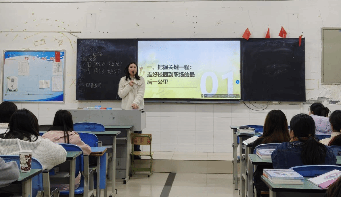 班会上,陈敬敏围绕“关键一程定位、纪律硬核底气、成长未来答卷”三大核心展开讲解,明确本学期是从校园到职场的“最后一公里”,并引导同学们要完成从“学生思维”到“职业思维”、从“被动学习”到“主动探索”的转变,强调课堂纪律、学业规范、日常行为背后的职业素养内涵,同时为学生解锁实习之门指明方向,鼓励大家深耕专业硬实力、锤炼技能软实力、拓宽视野格局,主动关注行业动态、参与专业竞赛、考取技能证书。