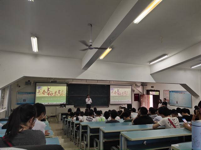 6月9日16:00,四川建刚乡产科技孵化集团、四川维度富银科技有限公司等企业在2215教室开展就业宣讲,我系2019级市场营销专业全体学生参加宣讲会。