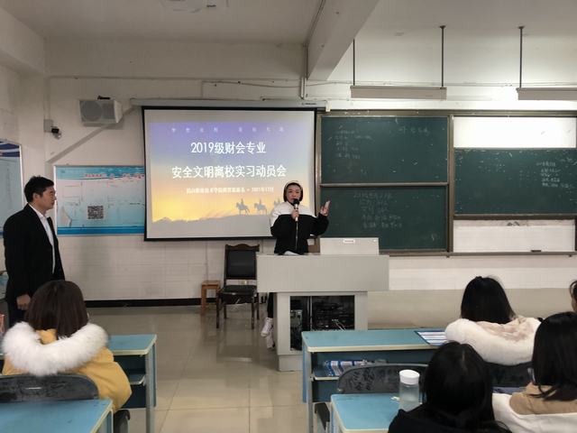 为切实抓好2019级财会专业学生实习工作,加强文明离校教育管理,12月22日,我系在2215教室召开文明离校实习动员会,系党总支副书记袁娇、专任教师魏秀云、教务秘书胡艺、学工秘书李一民、辅导员林国曦以及2019级财会专业全体学生参会,会议由李一民主持。