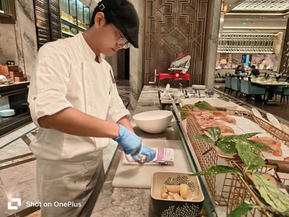 2022级烹饪工艺与营养专业的汪思源同学,是就业实习基地中的一员,在校期间担任班级学习委员、学院学生会纪检部干事,现在悟境(上海)餐饮管理有限公司旗下上海外滩瑞吉酒店实习,担任西厨房冷房职务,目前主要负责制作晚餐及备餐工作。实习工作中汪思源同学认真积极,严格确保食材和菜品的卫生和品质,早上开始收货到厨房,在粗加工间处理好食材后带回冷房进行细加工,晚上出餐时辅助楼下站档的师傅补餐,检查食材质量,更换标签,保证食材卫生和质量。在实习工作中汪思源同学积极上进,主动性高,学习能力强,获得了领导和同事的一致好评。