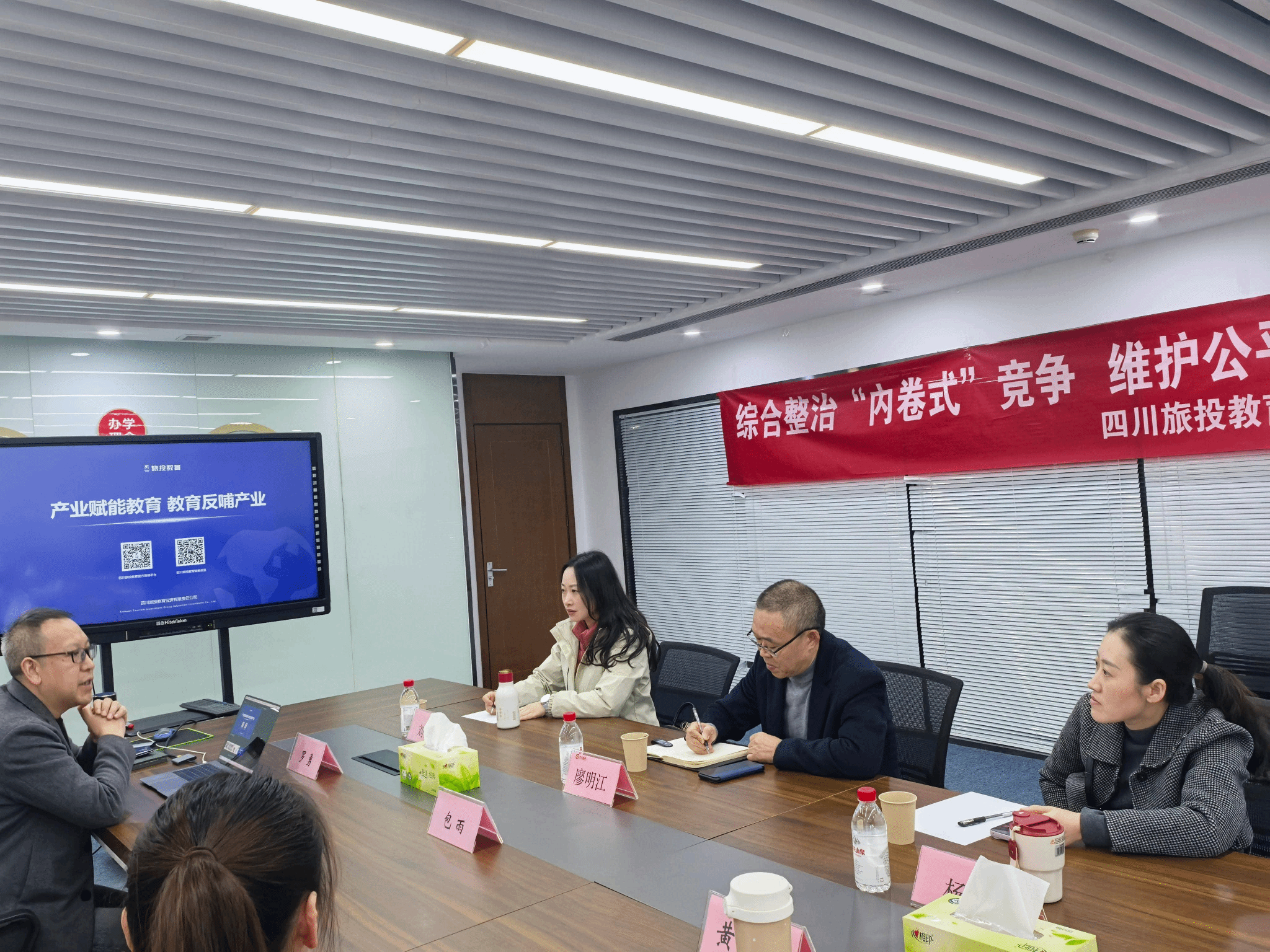 座谈会上,四川省旅投教育投资有限公司负责人包雨表示热烈欢迎,并详细介绍了公司的发展历程、业务布局、师资力量、教学宗旨、教学理念和办学模式。包雨讲到,作为四川旅游集团旗下的专业教育投资机构,公司致力于推动旅游教育事业发展,培养适应新时代文旅产业发展需要的高素质技术技能人才,他重点介绍了公司在新媒体融合方面的探索和实践,并讲到公司正积极探索将新媒体技术融入传统旅游教育,通过短视频制作、直播带货、数字化营销等方式,培养具有新媒体思维和技能的复合型人才。廖明江介绍了学院的基本情况、专业设置和人才培养特色。他讲到学院始终坚持“产教融合、校企合作”办学理念,注重培养学生的实践能力和创新精神,着力为社会培养高素质技术技能人才。双方就产教融合、教学科研、实习就业等方面达成了初步合作意向。