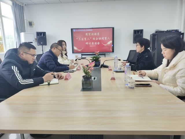 3月7日,商贸旅游系“三全育人”校企协同育人研讨座谈会在2207会议室召开。成都良木缘咖啡西餐有限责任公司总经理刘静玲、企业经理孟娟,商贸旅游系主任廖明江、党总支副书记袁娇、烹饪专业负责人张小东参加座谈会。