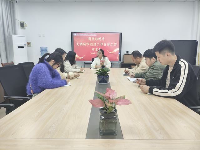 3月17日,商贸旅游系在2207会议室召开文明城市创建工作宣传工作布置会,系党总支副书记袁娇主持会议。