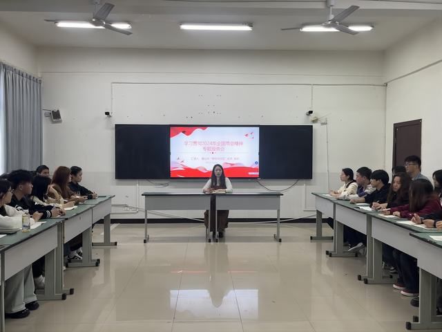4月7日,商贸旅游系在2211教室召开学习贯彻2024全国两会精神专题报告会,系党总支副书记袁娇作专题报告,团总支全体学生干部参加报告会。